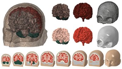 A good example of 3D image segmentation being used involves work at Stanford University on simulating brain surgery. In this project, researchers looked at how to reduce risk during decompressive craniectomies, where pressure is relieved in the skull during invasive brain surgery. Carried out between Stanford, the Stevens Institute of Technology, Oxford University, and the University of Exeter, models were built using Simpleware software, including segmentation.