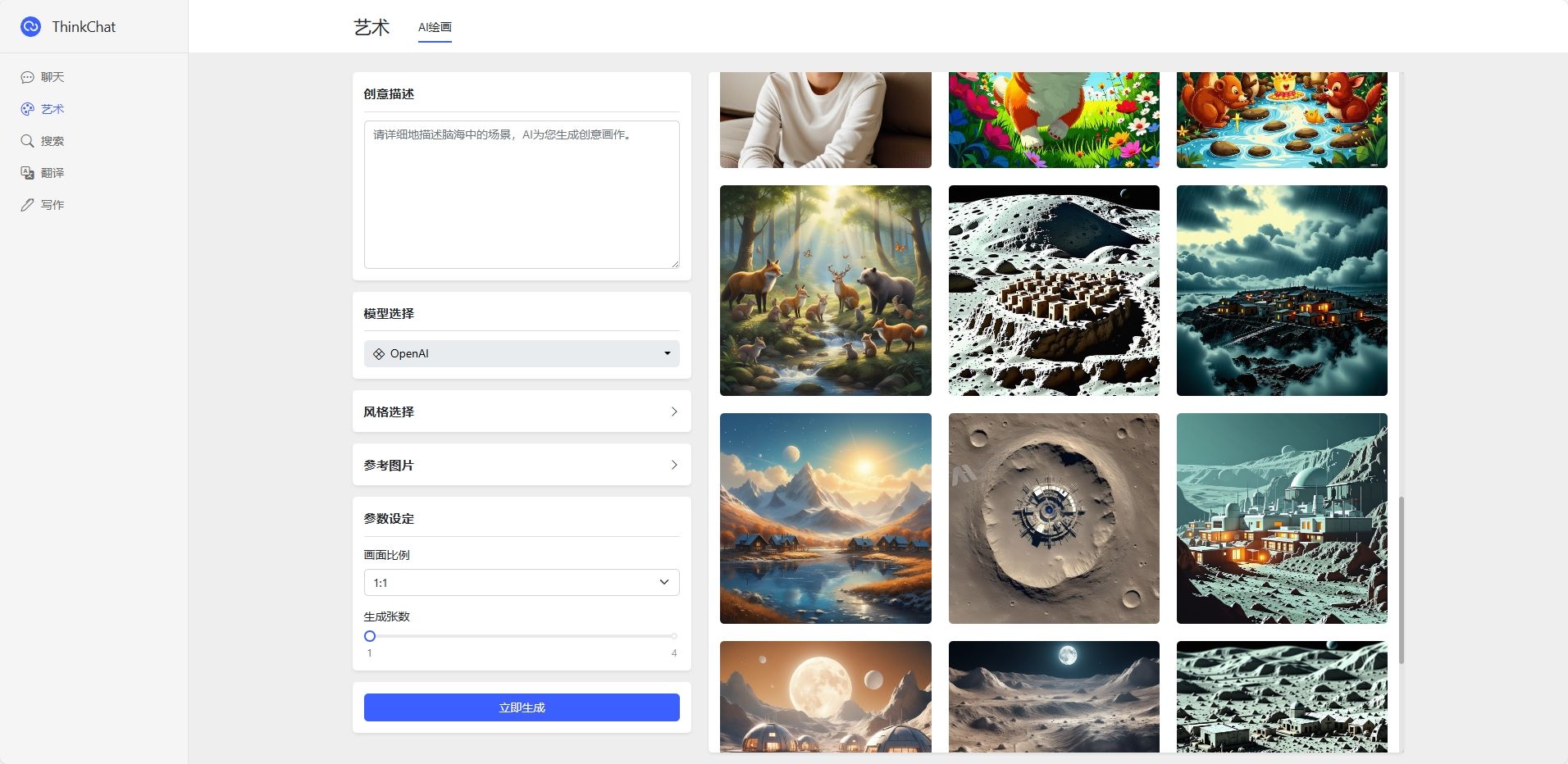 新版AI助理依托`ThinkAI`底座,可以支持不同模型的切换对话,调试和选择自己最适合的对话、画图等模型。