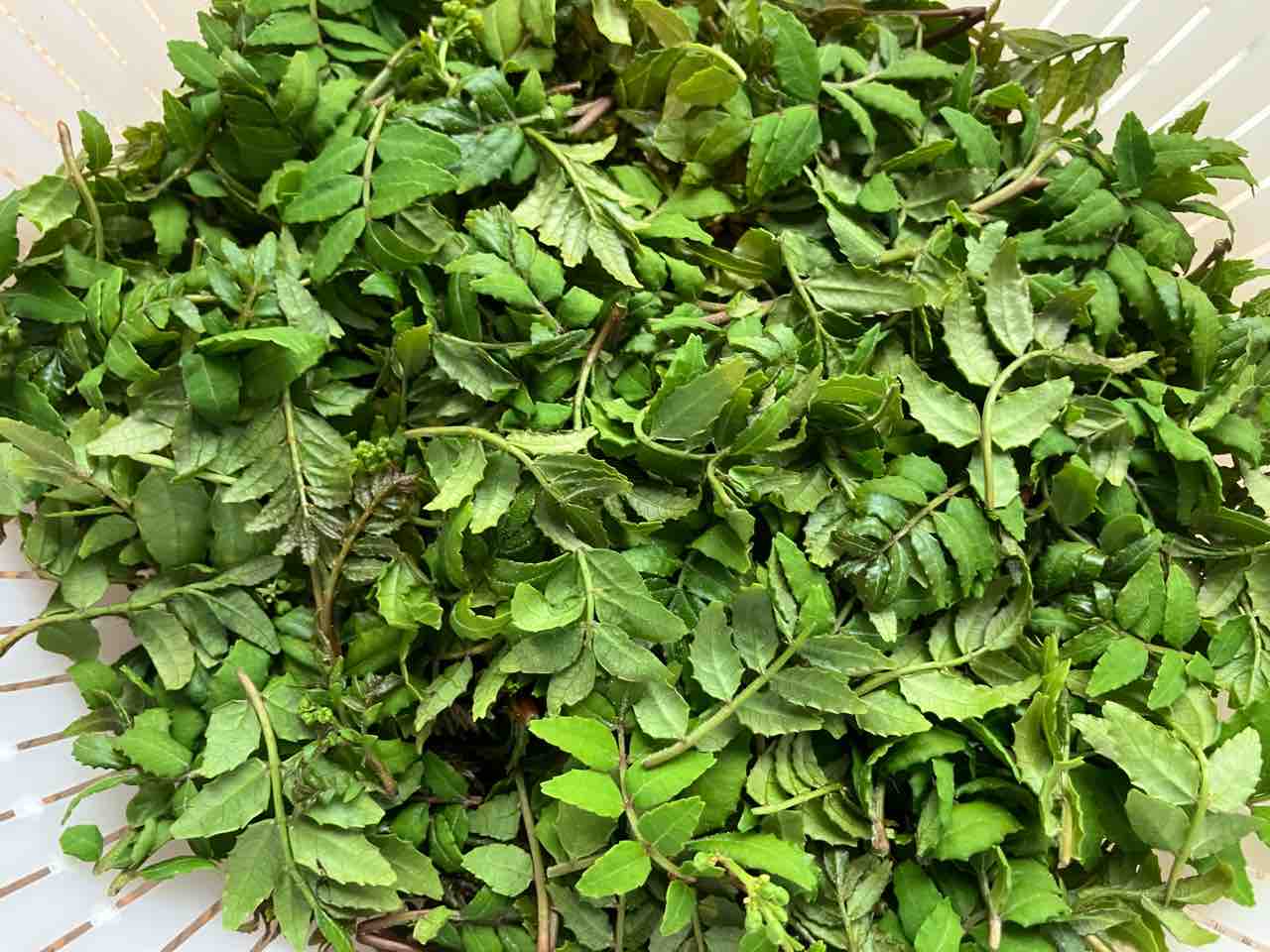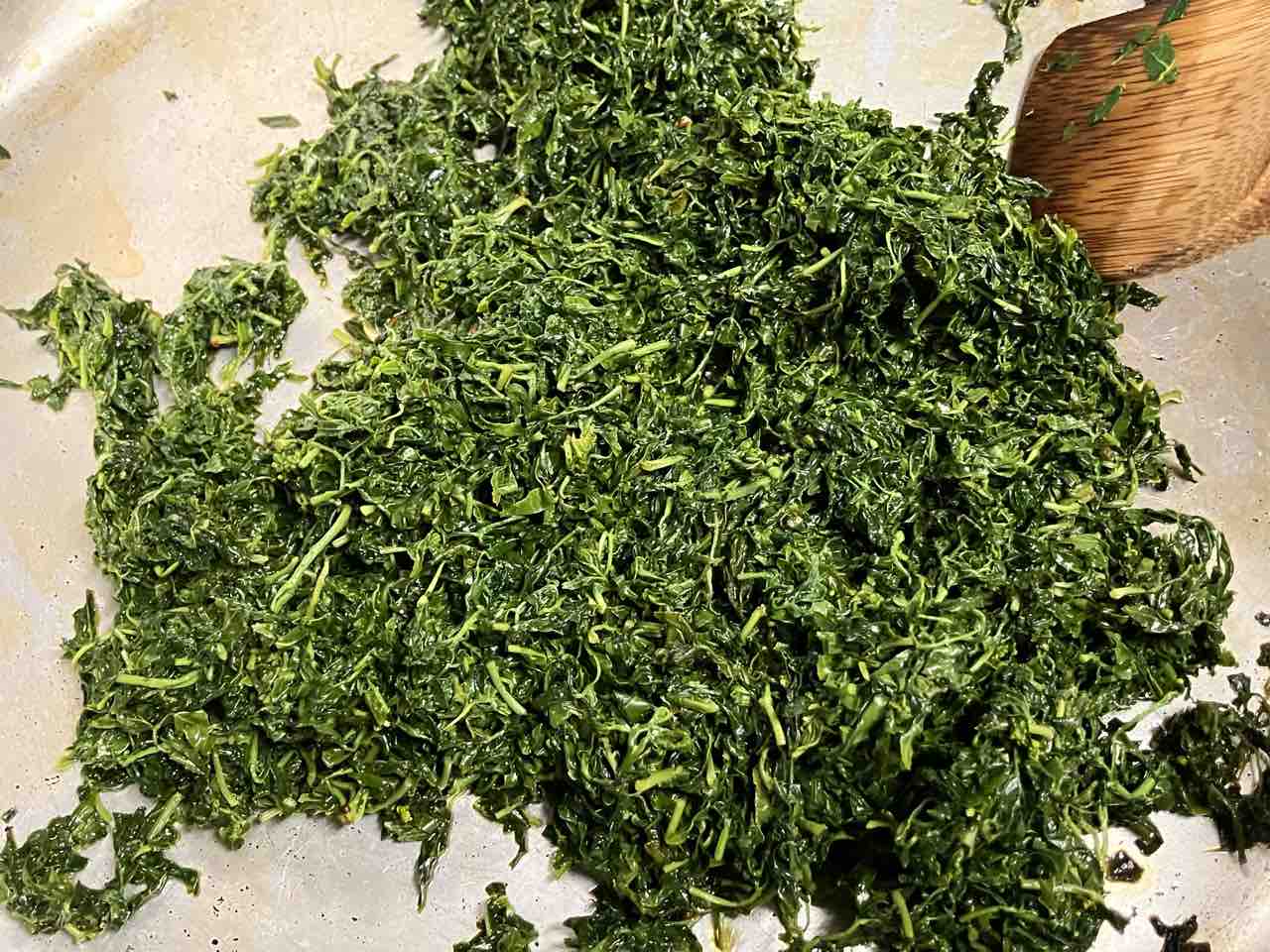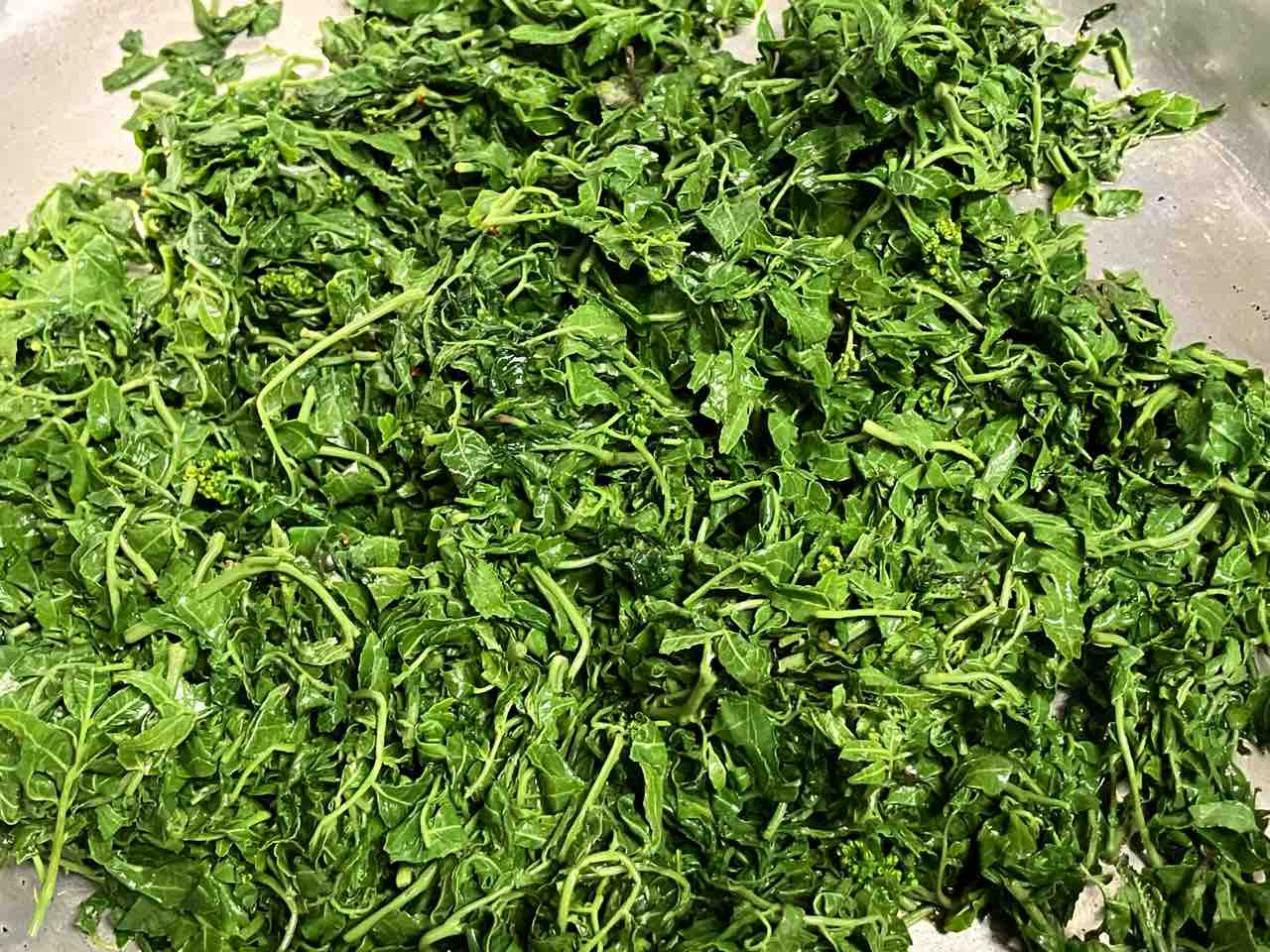 残りの葉と一緒にさっと熱湯でゆがいて水気を切り、