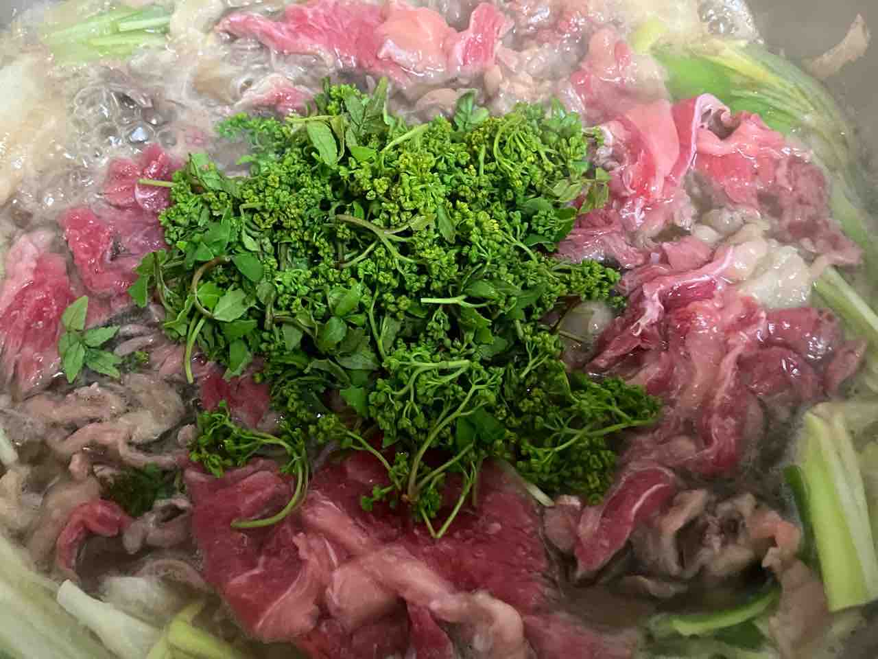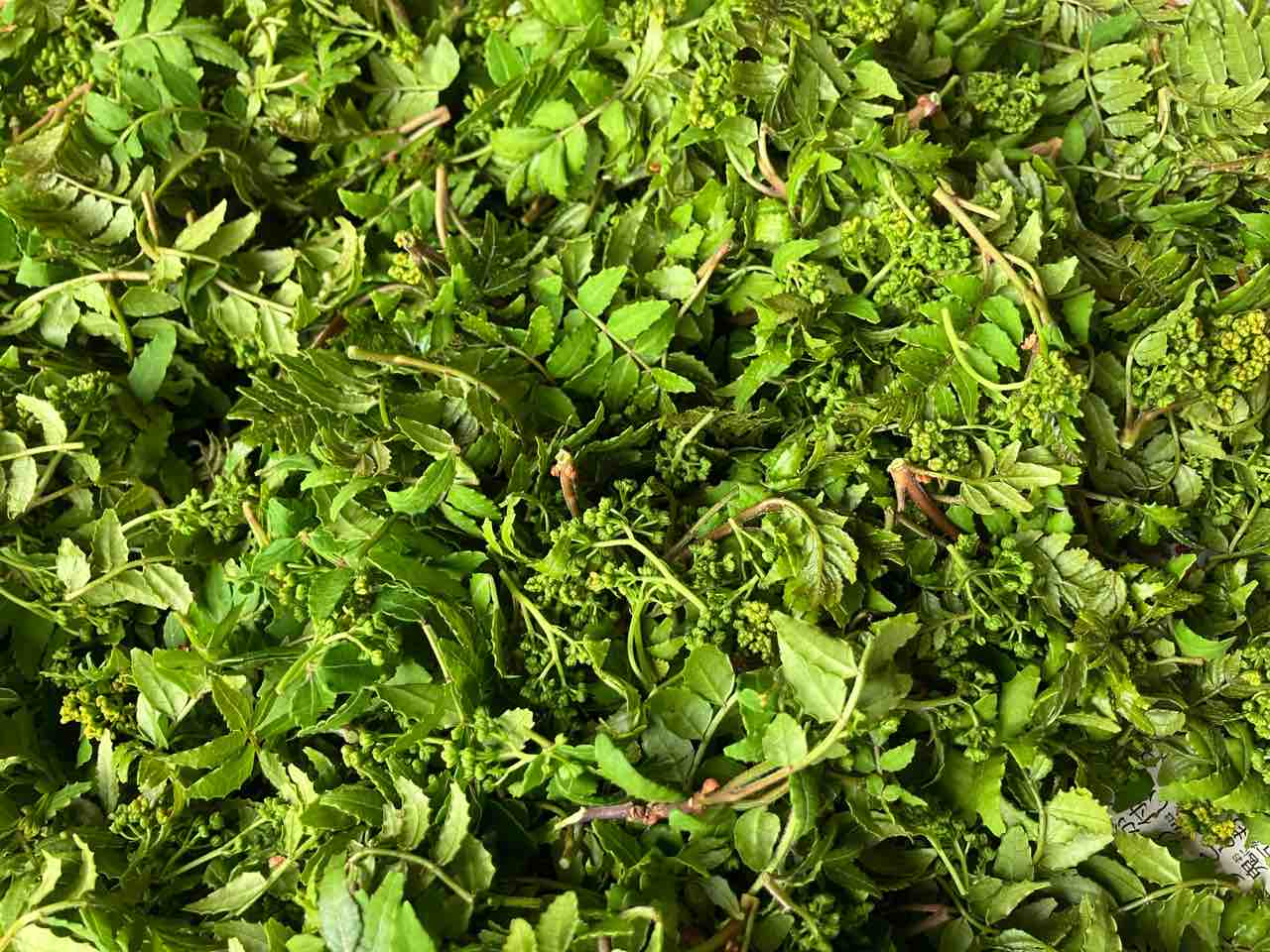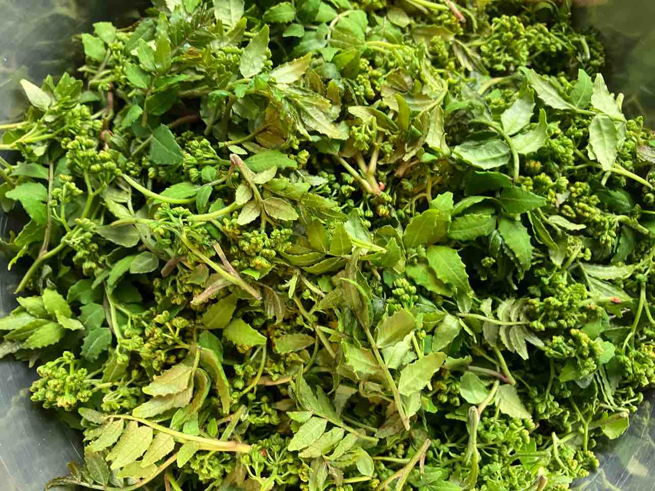 残りの葉と一緒にさっと熱湯でゆがいて水気を切り、