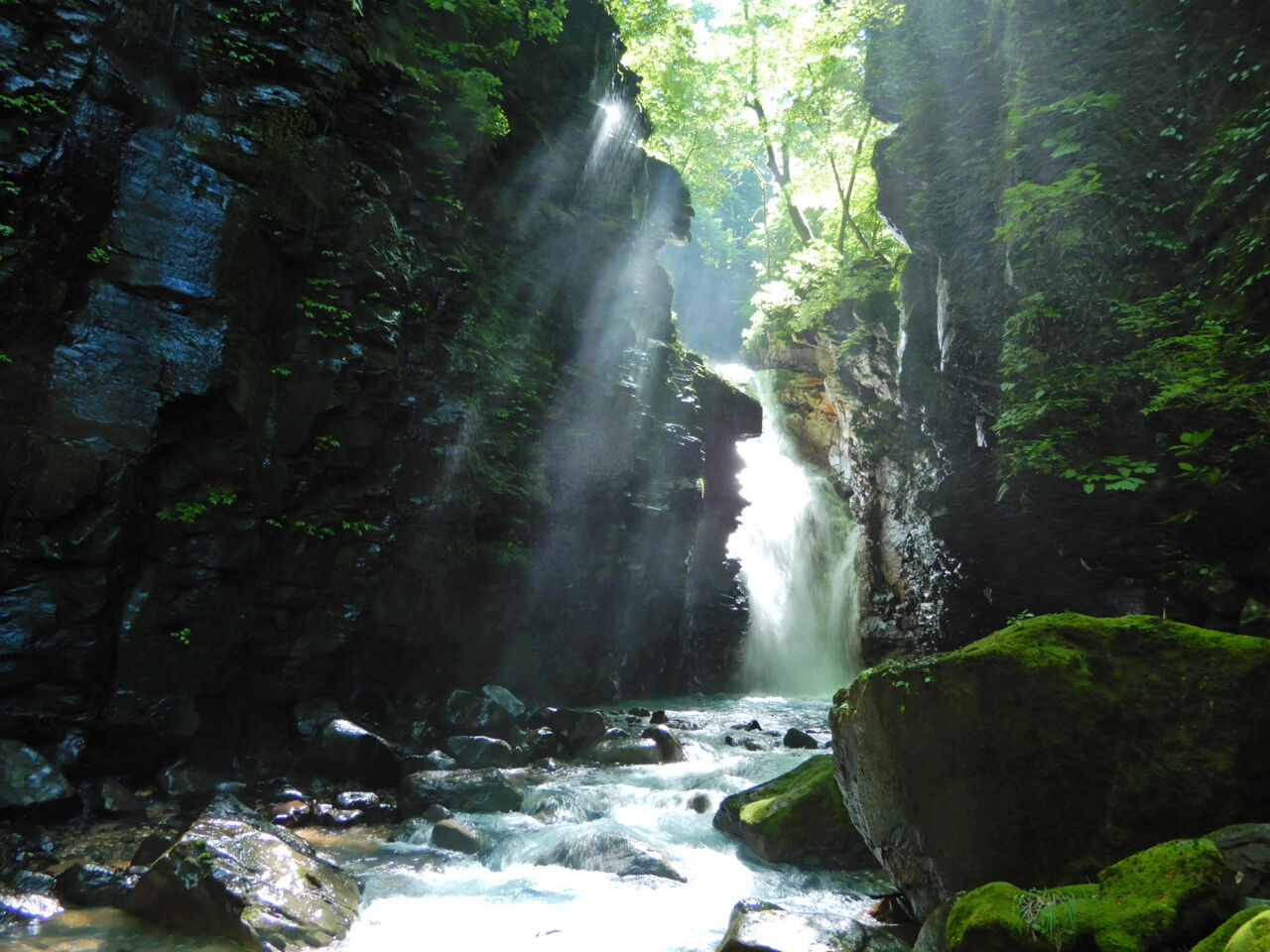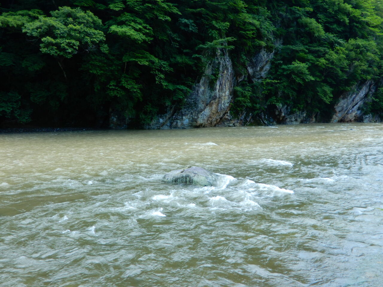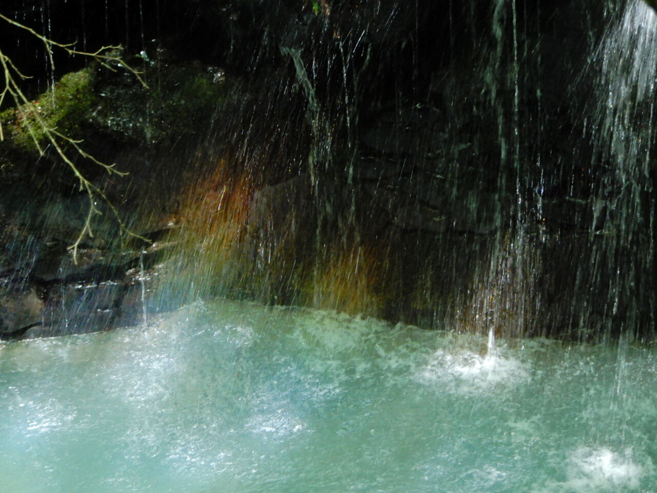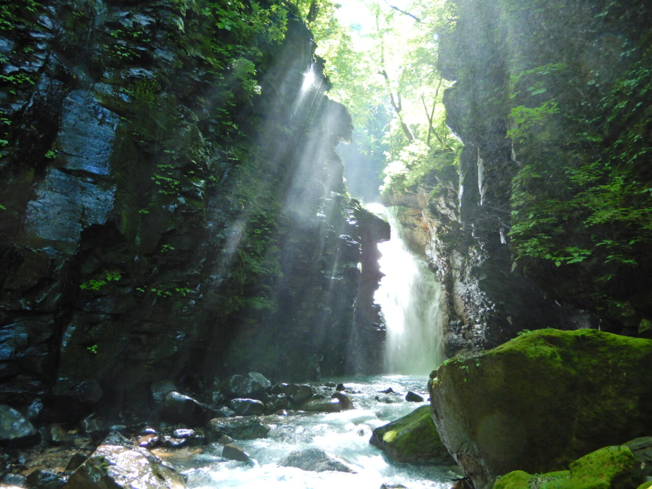 スッカン沢では、広範囲で水しぶきが上がるので、