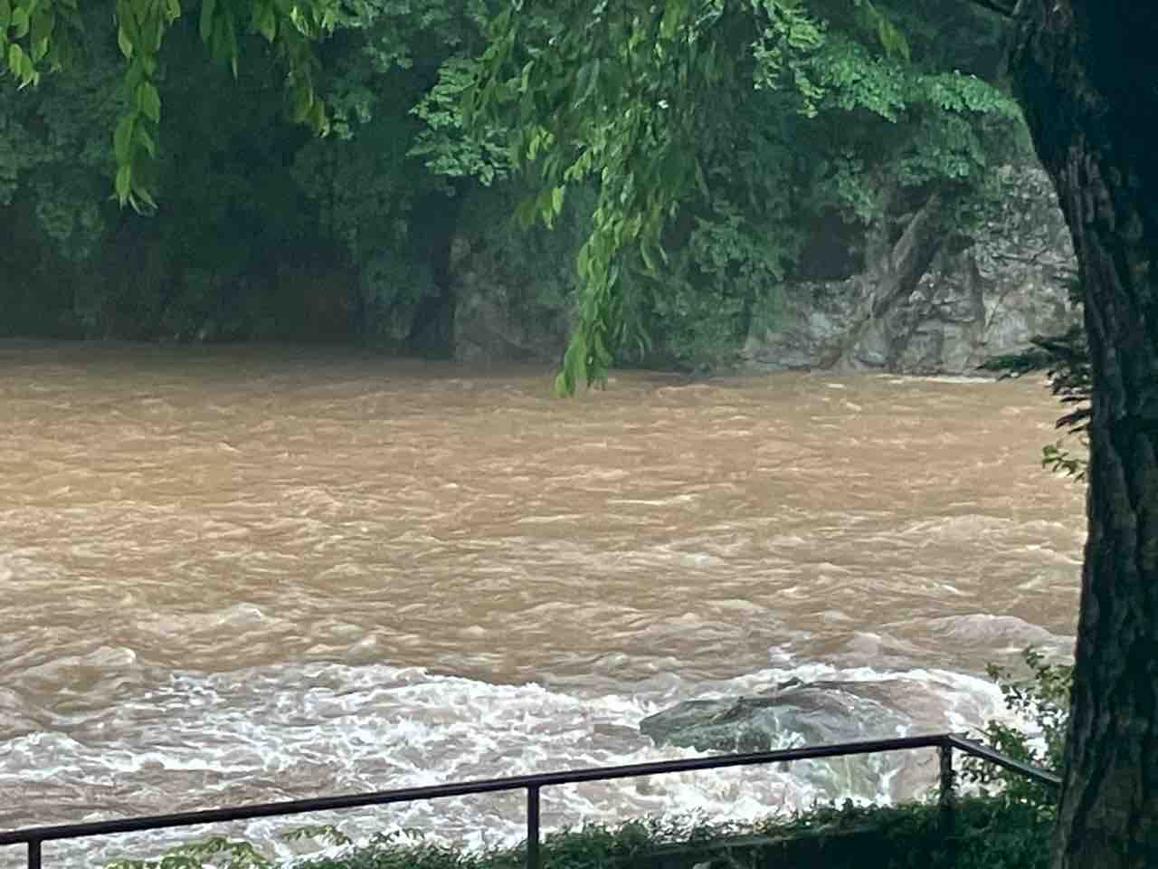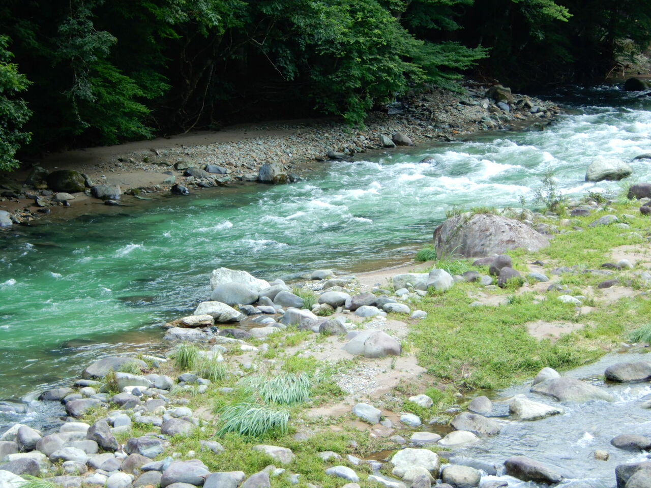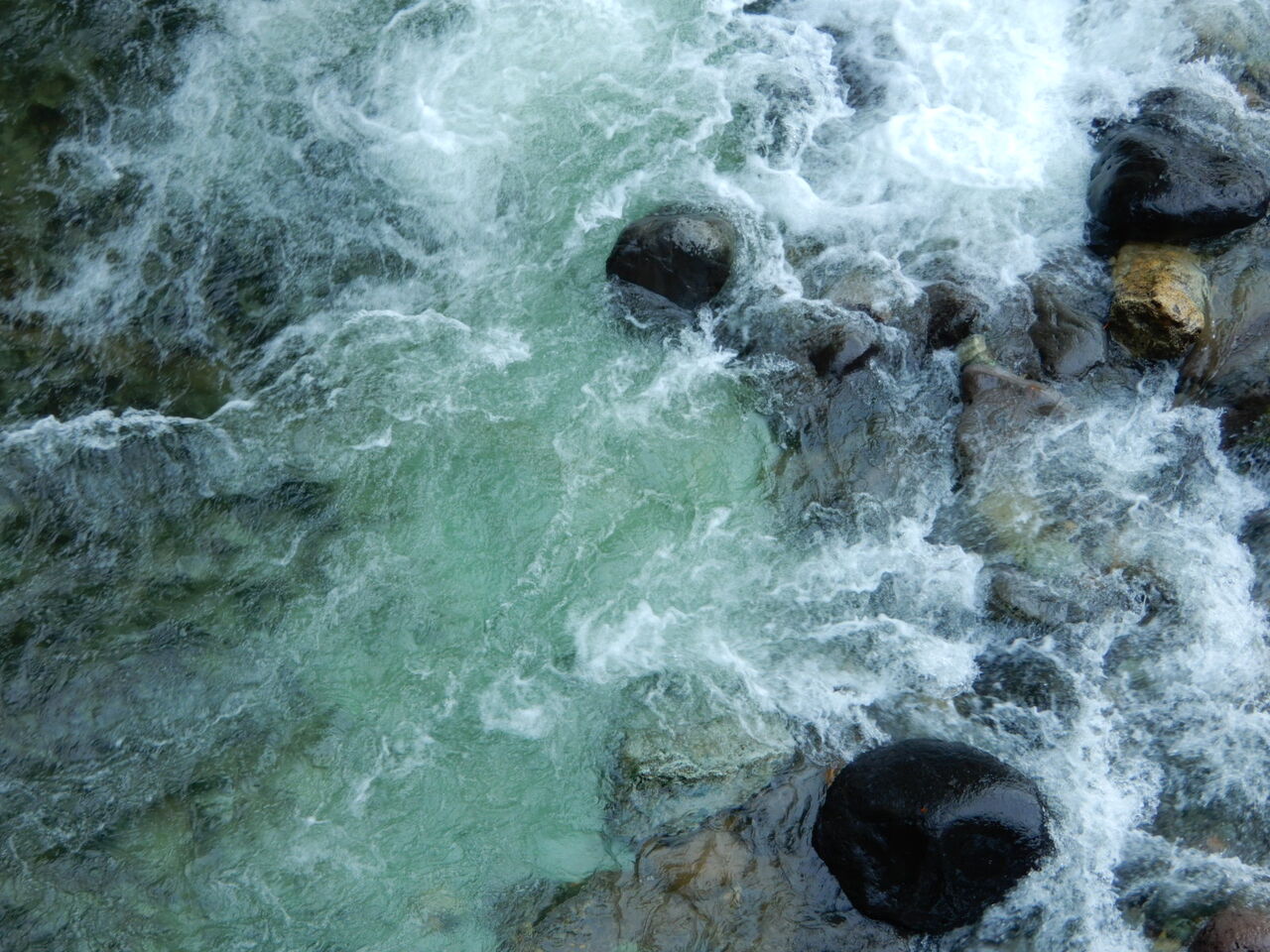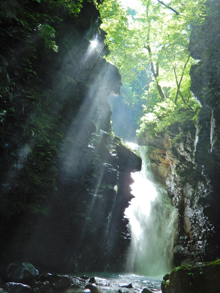 スッカン沢では、広範囲で水しぶきが上がるので、