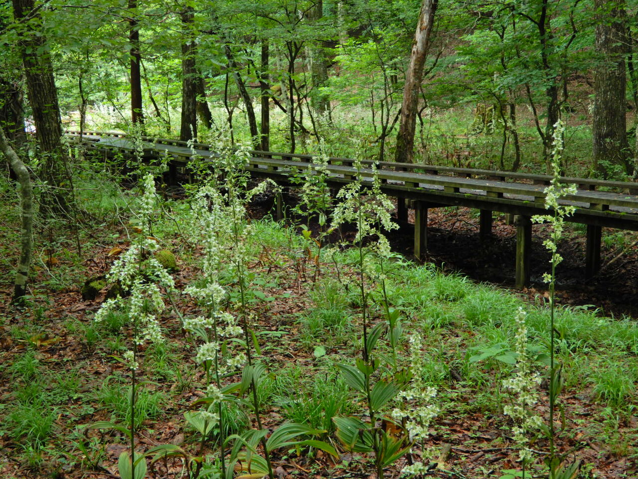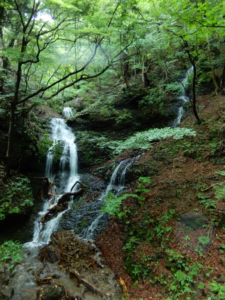 その周辺の崖から幾筋もの水が流れ落ちています。