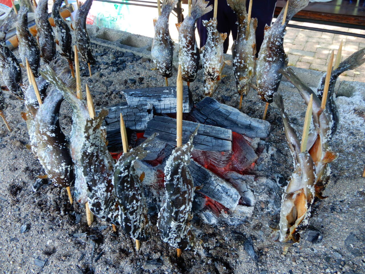 あらかじめ焼いてあるニジマスを食べるのもOK。