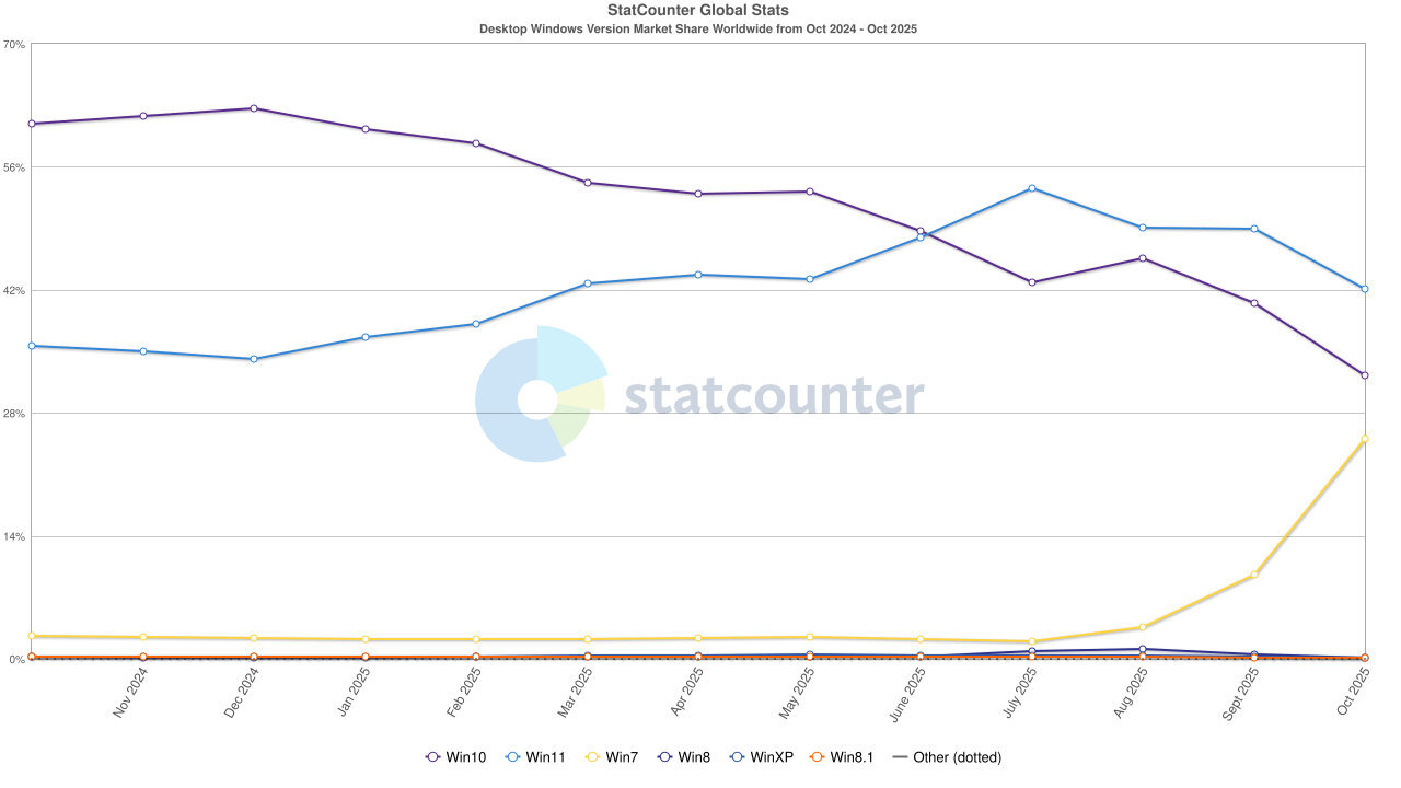 Windows10のサポート終了に伴い、なぜかWin7ユーザーが急増している模様