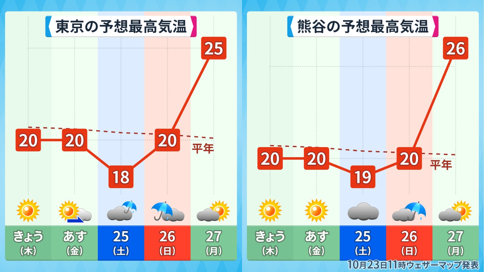 25°Cまで上がる予報は東京だけで全国的に見たら今日と同じくらいだね