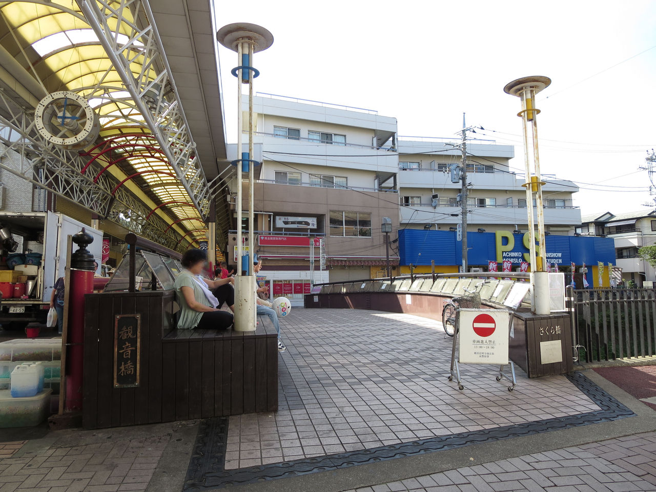 上の写真は横浜でも元気な商店街の1つといわれる弘明寺商店街での一コマ、ここのアーケードは最近整備がなされ非常にきれいでなかなか工夫されていると感じたのですが、途中の橋では歩道に椅子状のスペースが確保され、高齢者が休憩している光景が印象に残ります。