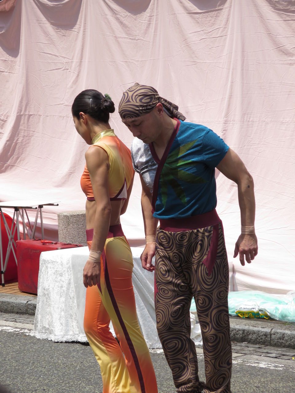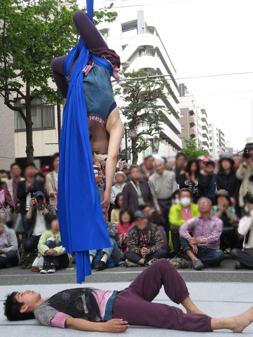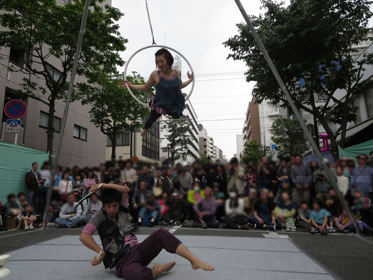 続いては東京うぐいす座のポールダンス、ポールダンスと言うときれいなおねぇさんがセクシーな衣装でと言ったイメージですが、こちらは男女のペア、セクシーさに欠ける分、回る回る、アクロバットに立体的に見せてくれます。セクシーさに欠けると言いつつ花火おねぇさんの華やかさも魅せてくれました。