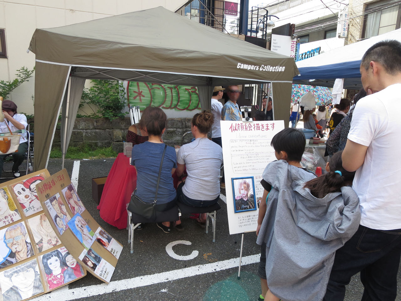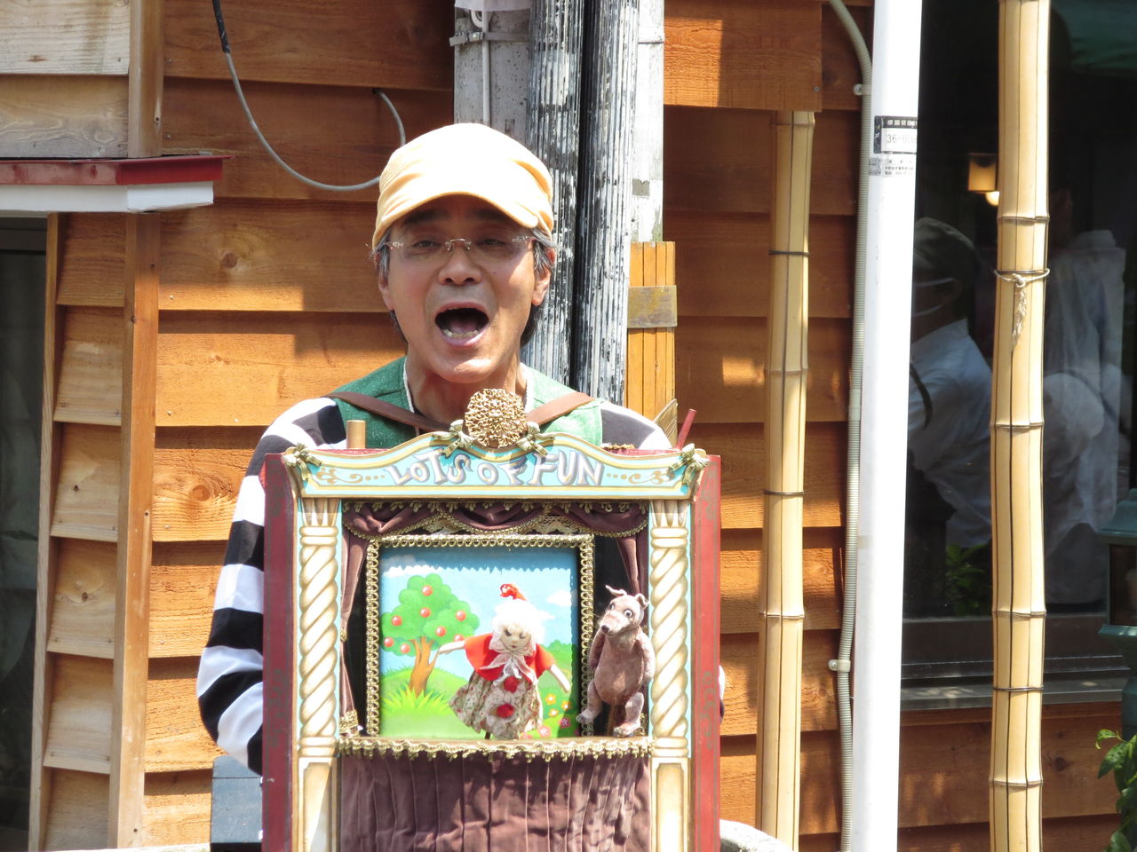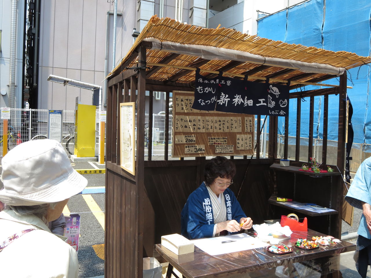 引き続いて今度は少し裏通りに入っていきます。裏通りではフェイスアートにしんこ細工、人形劇に人間ジュークボックスと道路がやや狭いこともあり、少し縁日のような賑わいを見せます。表通りの大道芸が大人向けと言うか一般向けなのに対し、こちらは子供でも親しみやすい感じです。