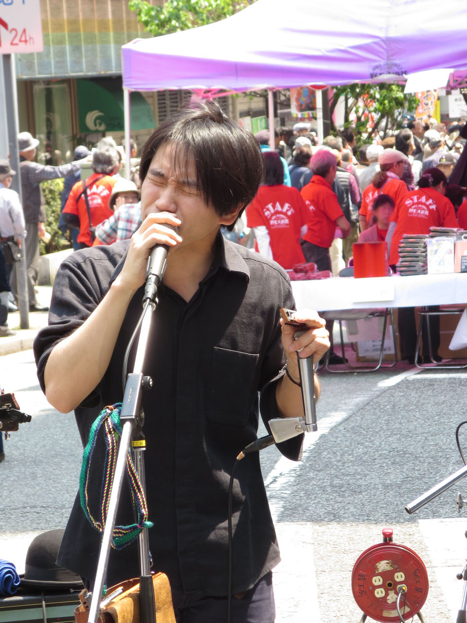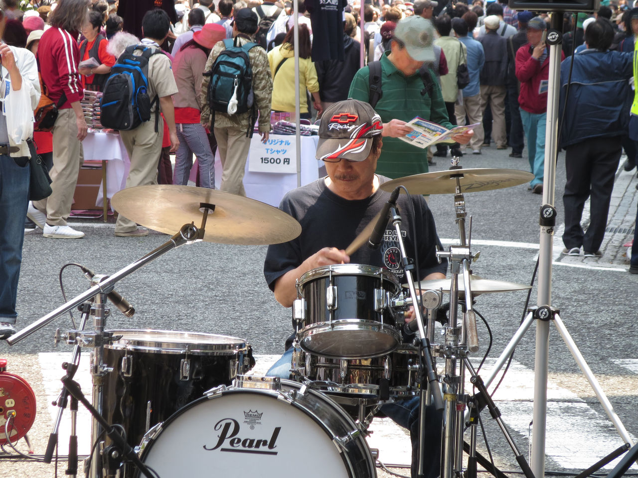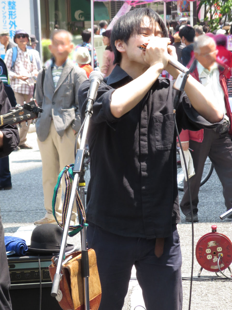 さて演奏の方は小柄でおとなしそうな風貌に似合わずソウルフルに歌い上げる清野氏のハーモニカ及びボーカルが非常に見事でした。大道芸という事で音楽系の出し物と言うとちんどん屋さんみたいなのが多いイメージだったのですがこれは思った以上に意表を突かれました。