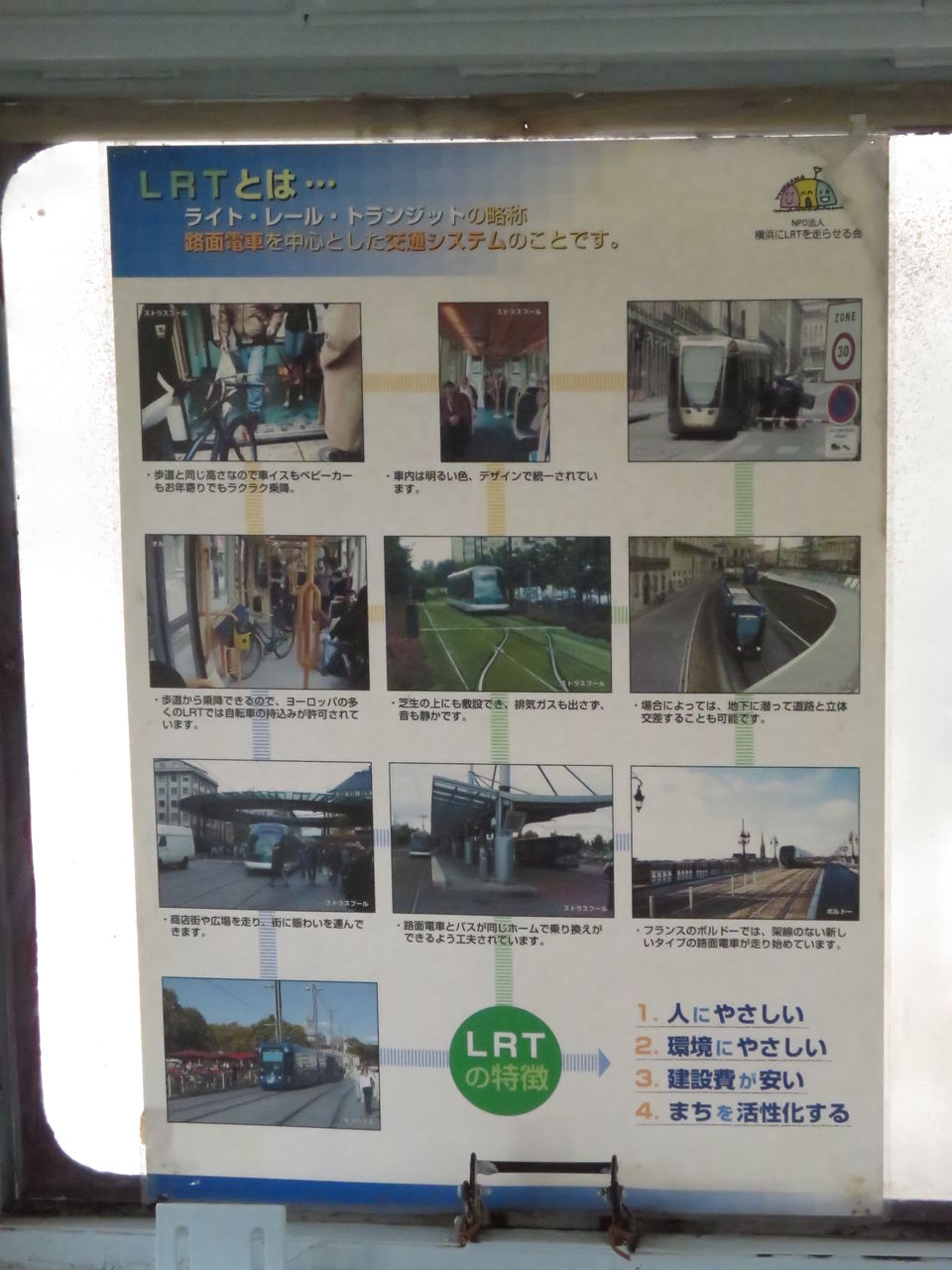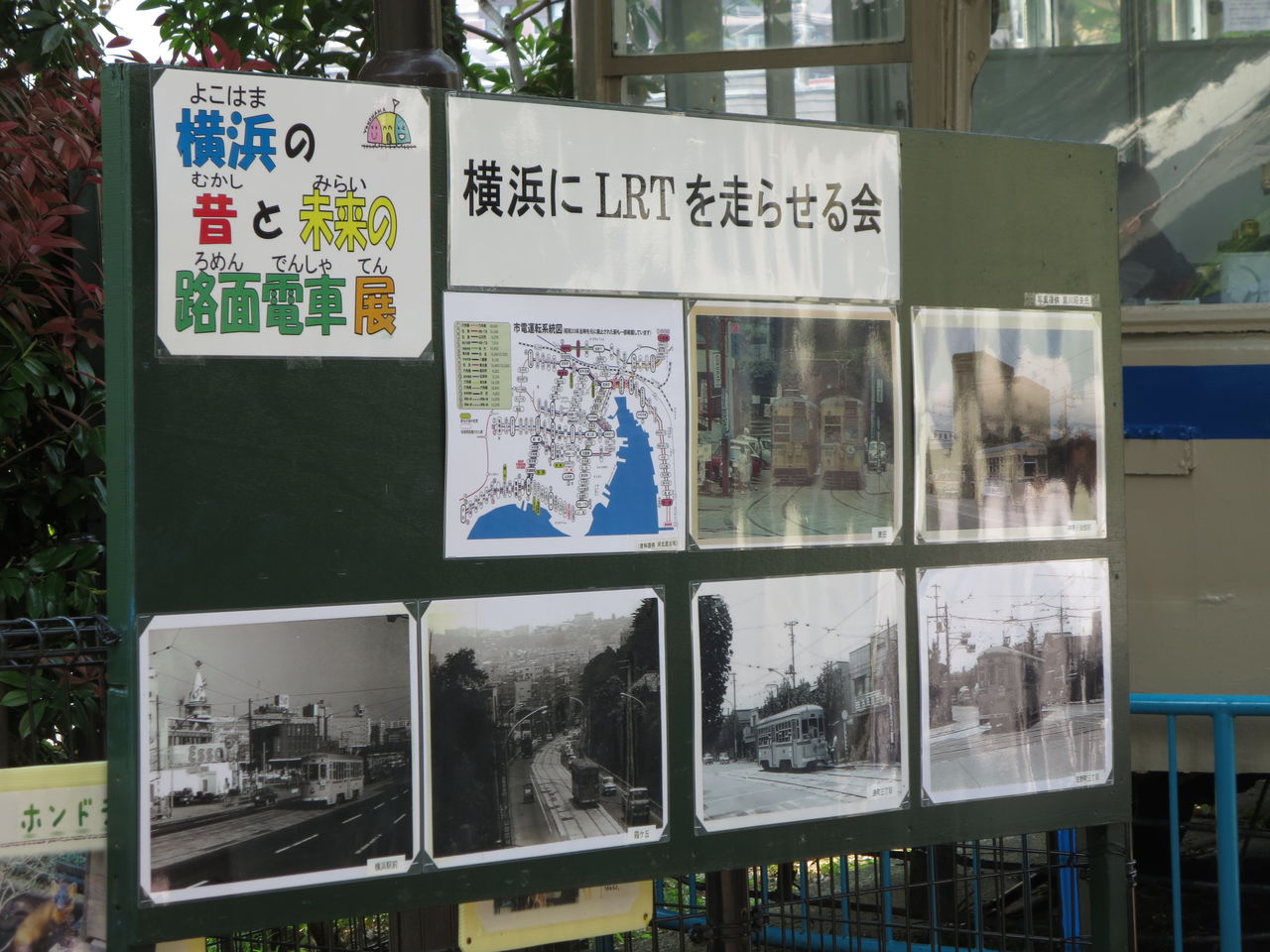 続いては路面電車の方に移動します。路面電車の中は未来の路面電車展と題して横浜市の都心臨海部再生マスタープランにおいて回遊性向上の為の交通機関としてLRTが検討されているため実現したときにどんな感じになるだろうかと言う事で現在の横浜の光景と国内外のLRT車両の合成写真の力作が展示されています。