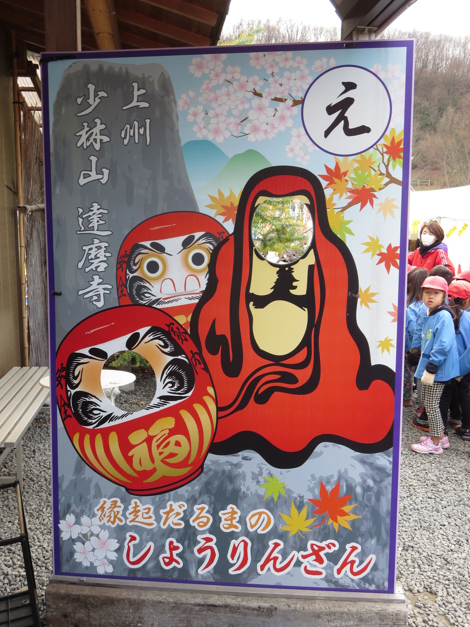 さて「"え"んぎだるまの少林山」と上毛かるたになぞらえた顔出しパネルを横目に見つつ最後にだるまを買って帰ります。今回はやや奮発して千円の1.5号のものを買っていきました。彼は今私の部屋に飾って片目だけ見開いています。