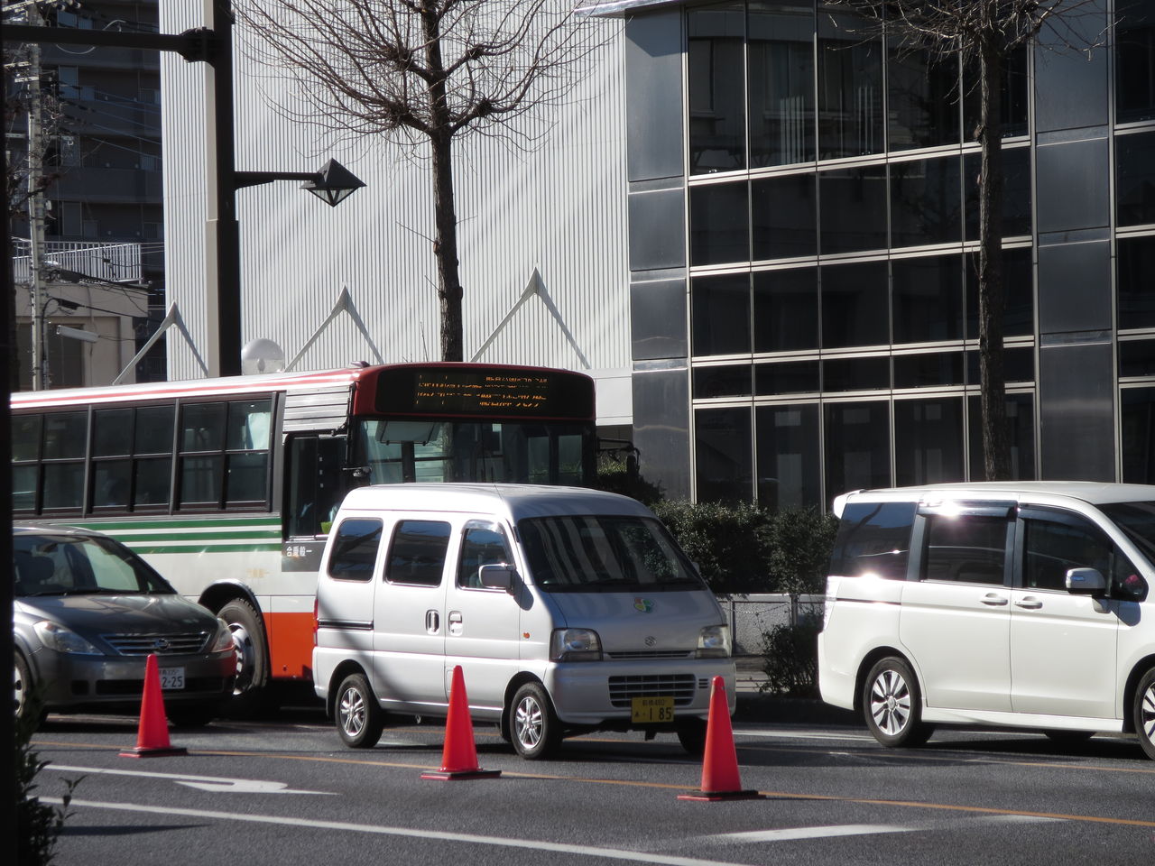 このマイバス本来は前橋の街なかをトランジットモールで走るのですが、この日をはじめとする大イベントの際は前橋市内で大規模な交通規制に巻き込まれ右の写真の損保JAPAN前橋ビル前バス停に迂回しますので注意が必要です。