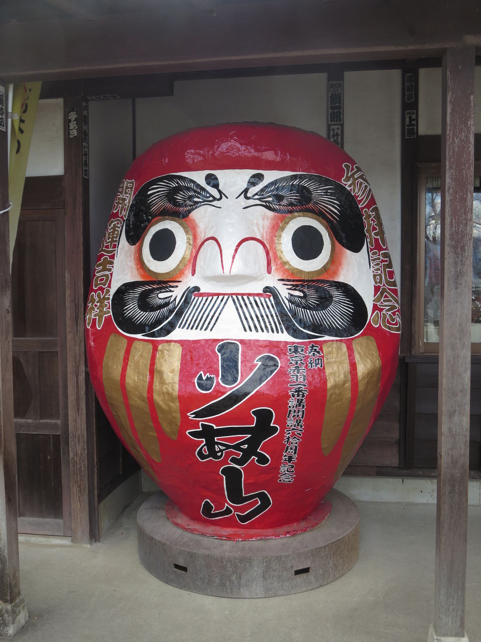 さて参拝も終わったので本堂の周りをぐるっとまわってみます。すると達磨堂なるものへの案内と絵馬(?)が早速目に入りました。この絵馬(?)ですが、お寺なので絵馬と言うのかどうかわからないですが何しろ形がだるま型と言うのがらしいです。達磨堂は残念ながら写真撮影が禁止されていたのですが、この福だるまのモデルとなった達磨大師の立派な像があってみたり、日本全国のだるまのコレクションが有ったりとなかなか面白い場所でした。ちなみにお約束の様に女性型のだるまがあったのには思わず笑ってしまったのは言うまでもありません。