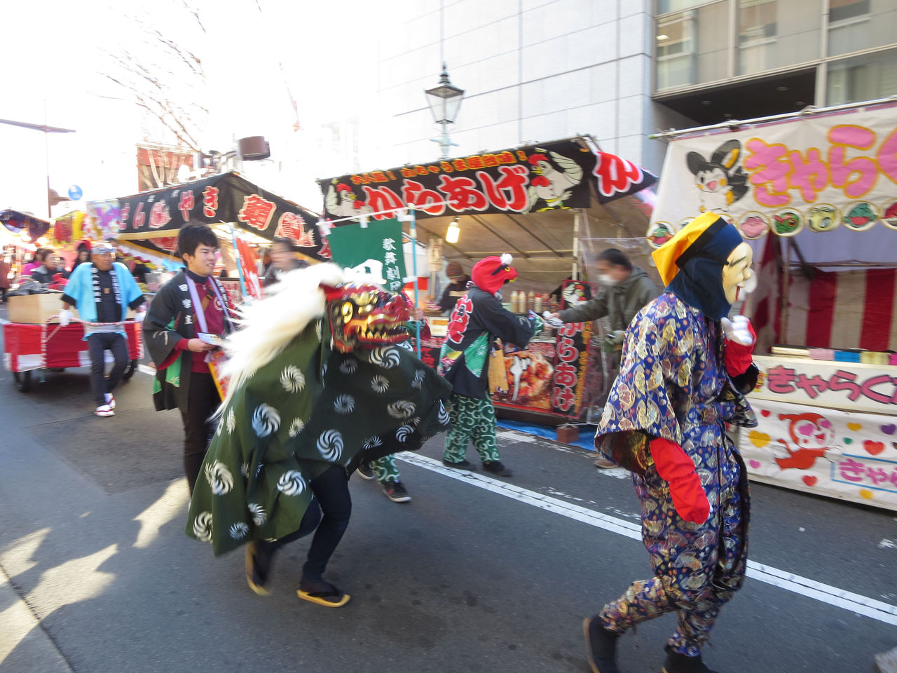 最後に御神輿やちんどん屋さんなどにぎやかな一行が続きます。獅子舞まであるのはなかなか愛嬌を感じます。個人的には獅子舞に頭でもかじってもらいたいところですが自重します。