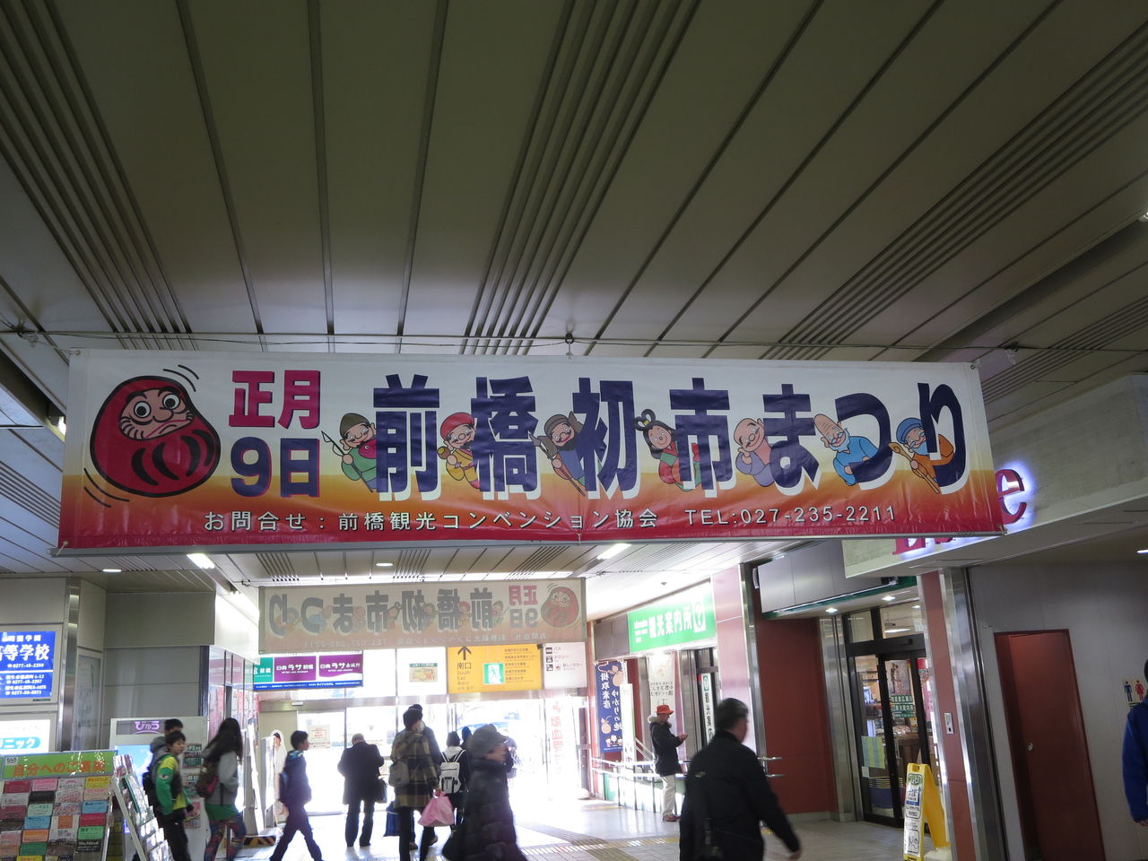 そして懐かしさに浸りながら前橋駅に到着します。前橋駅では誇らしげに初市まつりの看板が掲げられています。初市まつり、7月の七夕まつり、10月の前橋まつりとともに前橋3大祭りと呼ばれるほどのイベントでJRも力を入れているのかもしれません。