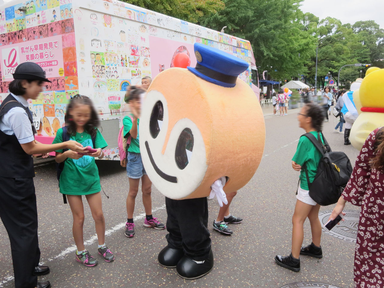 写真:横浜市交通局のゆるきゃらはまりんとそれに群がる子供達@ヨコハマカーフリーデー2017より