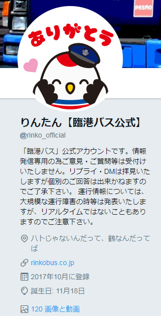 画像:神奈川のバス会社臨港バスゆるきゃらりんたんのTwitter
