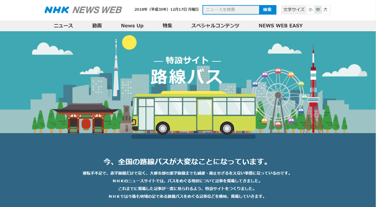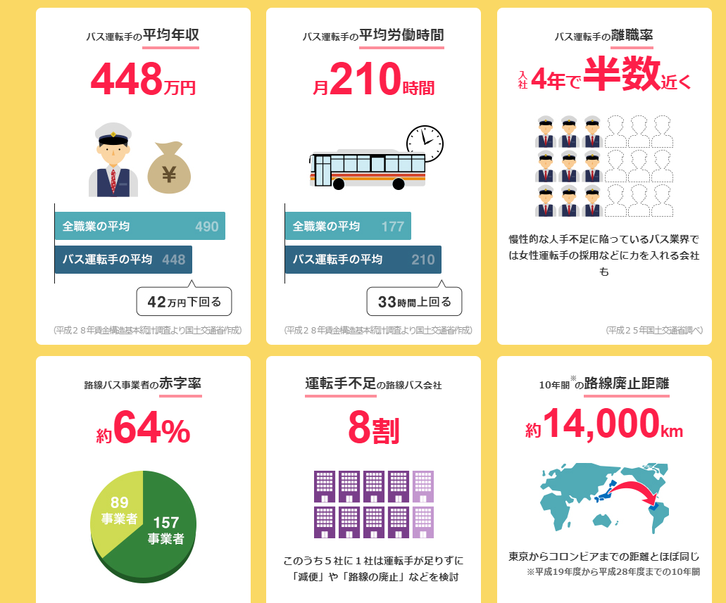 この分社化の大きな目的の一つは人件費の削減で、中には労使がもめて県労委が一部とはいえ会社側に救済命令を出した相鉄HDのような例もあります。そんな中で京急バスがその分社化を解消した背景にはバスの運転手不足の問題があります。NHKの特設サイトでは多くをこの問題に費やしています。賃金は低く、労働時間が長いため離職率が高く、その為運転手が確保できずに路線廃止や減便が増えていると言った感じです。