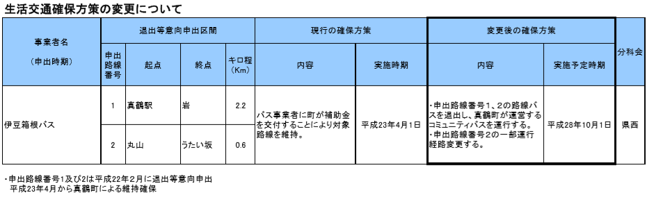 画像:県西地域分科会協議結果(平成28年9月23日文書協議)@ 神奈川県生活交通確保対策地域協議会 より