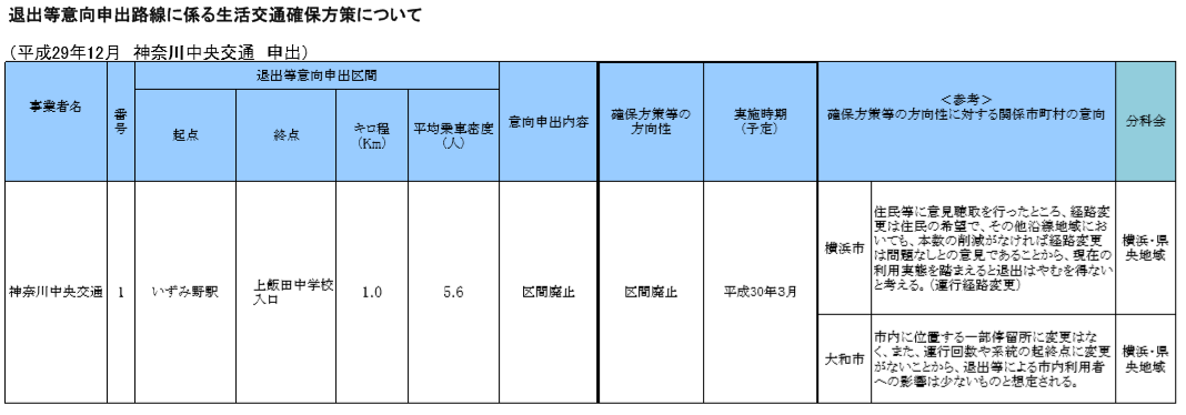 画像:横浜・県央地域分科会協議結果(平成30年2月27日文書協議)@ 神奈川県生活交通確保対策地域協議会 より