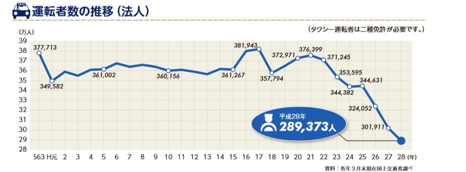 表:タクシー運転者推移(一般社団法人全国タクシー・ハイヤー連合会資料)