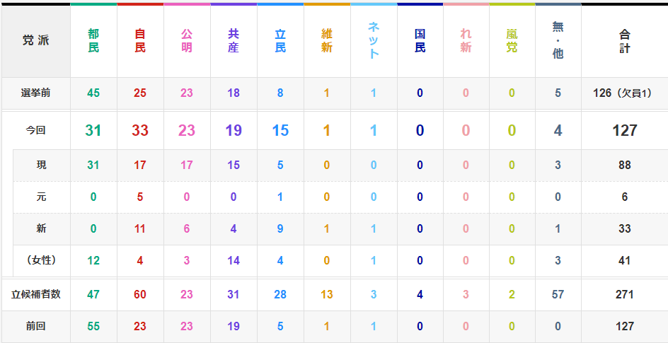 選挙前は45議席で第1党だった都民ファーストの会は14議席減らして31議席にとどまりました。〜中略〜