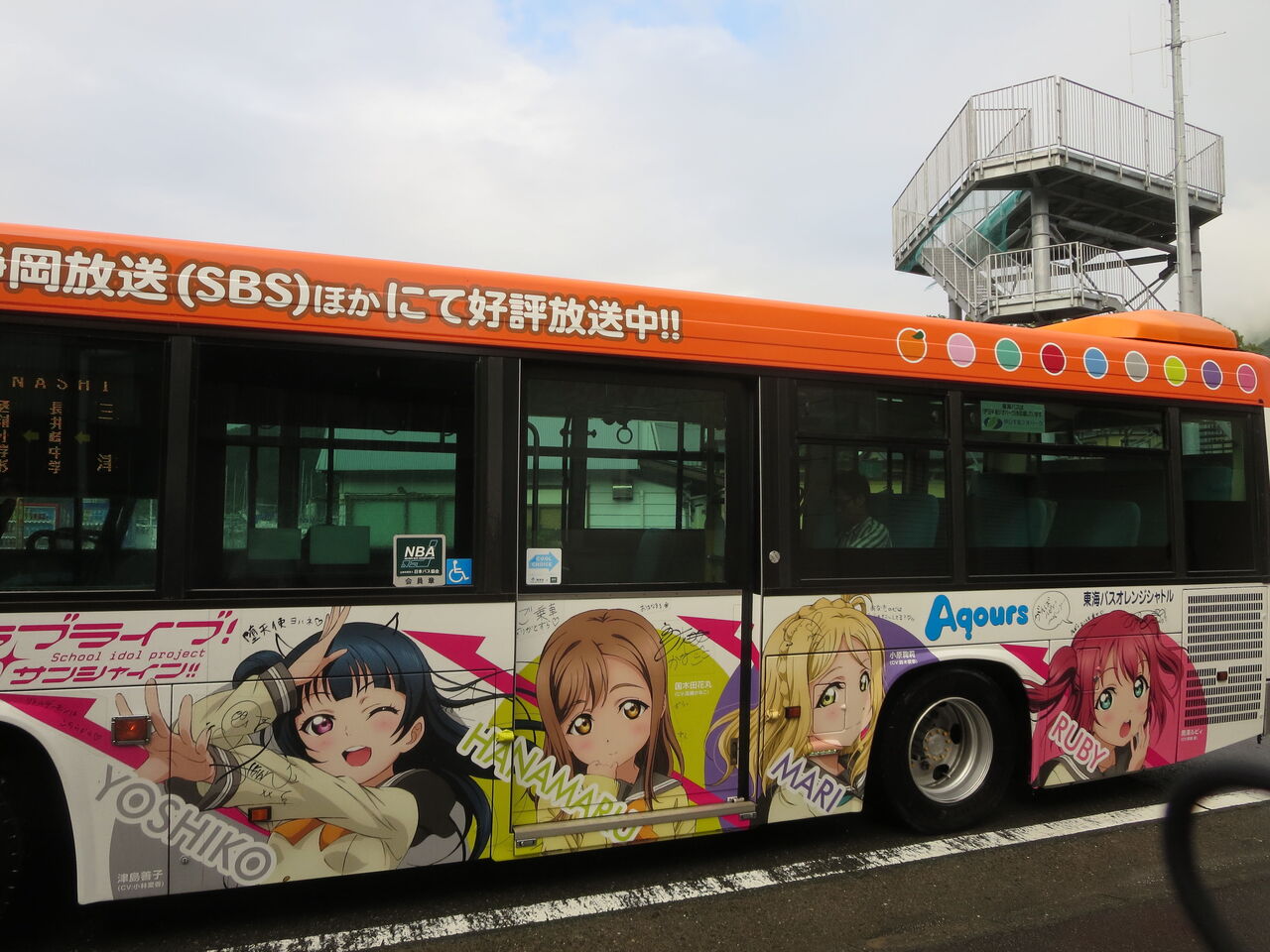 『ラブライブ!サンシャイン!!』の舞台となっている沼津市内浦地区において、「Aqours(アクア)」のメンバーが作中の3つのユニットに分かれ、にラッピングバス1号車、2号車、3号車の車内アナウンスを担当しています。