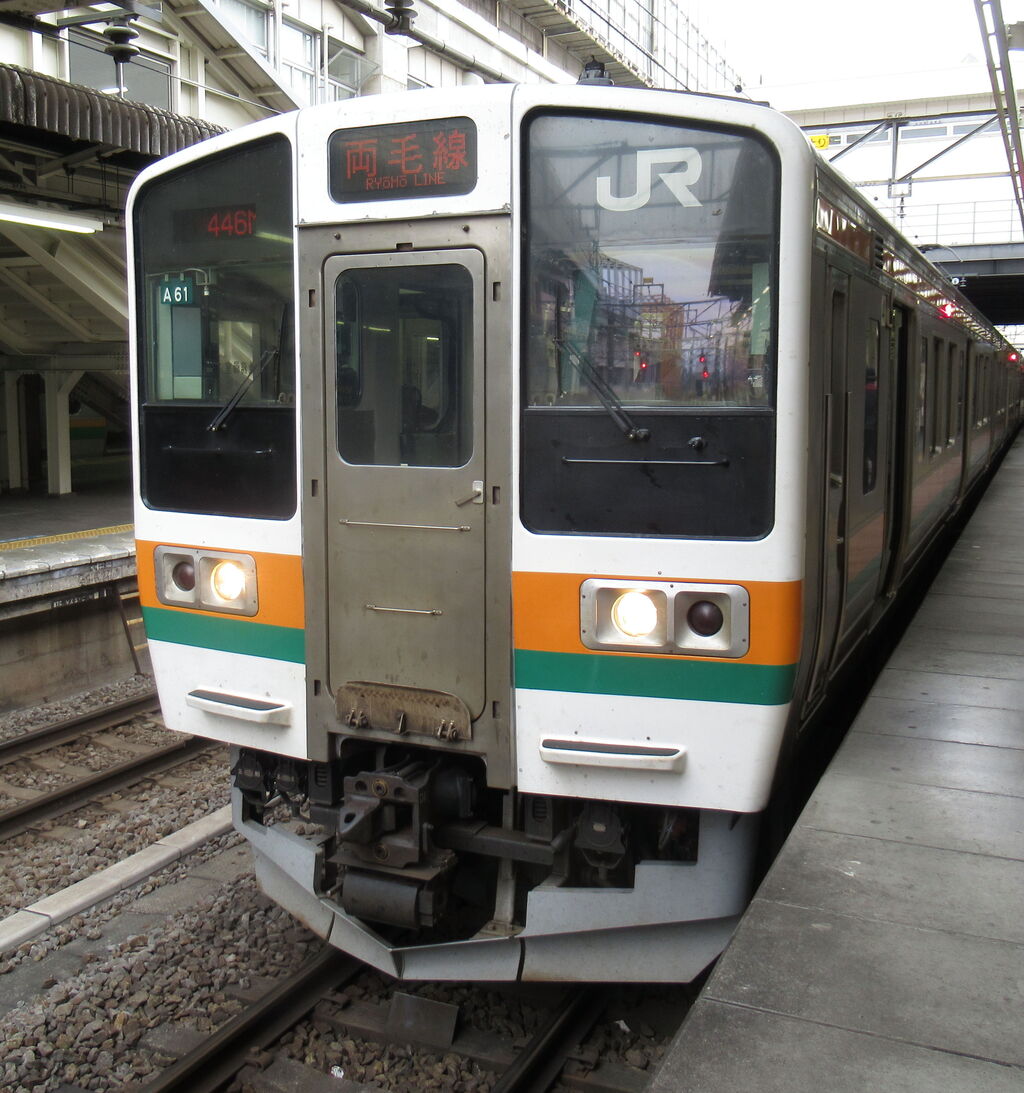ぶら〜っと群馬県前橋市に行ってきました。横須賀・横浜・東京・埼玉方面から前橋に向かう場合、東武伊勢崎線で伊勢崎駅に出るか、JR高崎・八高線で高崎駅にでてJR両毛線にのるのですが、両毛線では東京などへの直通列車を除くと写真の211系となります。一応国鉄時代に作られた車両ではあるのですが少し前までボックスシートのある車両が走っていたので少し残念です。