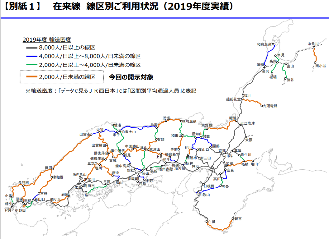 コロナにおいて、大都市および長距離輸送を中心に乗客が激減し、公共交通崩壊が叫ばれる中JR西日本が利用の少ない所謂ローカル線の問題について課題認識及び輸送人員や経営状況などの現状の情報を公開しました。