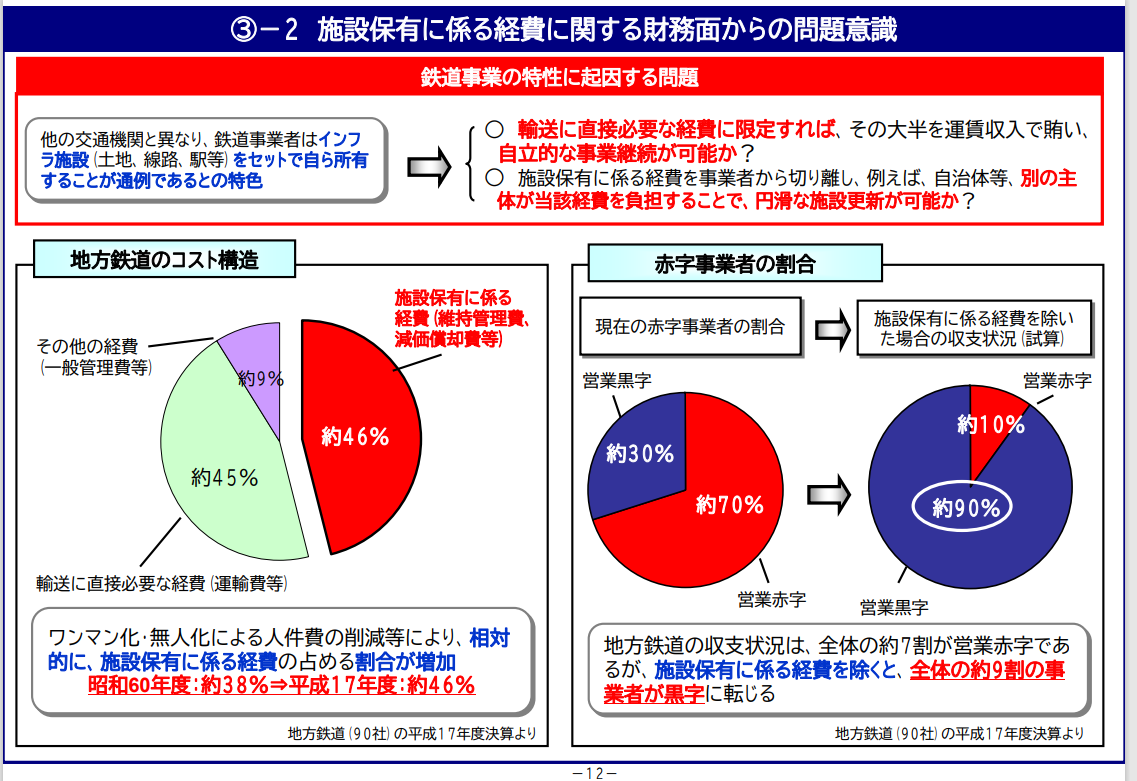 減価償却費をはじめ具体的な詳細が分からないので数字を独り歩きさせるのは避けたいところですが、ものすごい数字が並んでいます。輸送密度(平均輸送人員)11人、営業係数25416、収支率0.5%、年間赤字額34.5億円(2017〜2019収支)、日経新聞の記事にある年間赤字248億円、大きな数字が並びます。