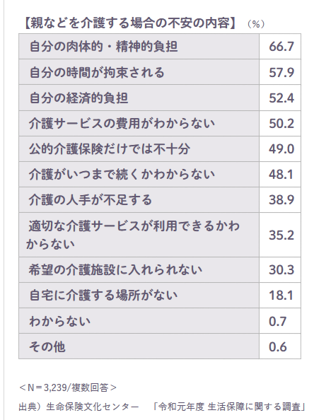 ただし「高齢者向けを中心とした福祉」の受益者が単純に高齢者化と言われたらそこまで単純でもありません。例えば上の生命保険会社のアンケートでは現役世代の多くが現状の介護に関して「肉体・精神・時間・経済的な負担」の大きさに不安を感じていて、かつ半数近くが「現状の公的介護は不十分」と感じています。この中で福祉を減らし介護保険を縮小する事は現役世代の負担増加に繋がると言えますし、それが出生率低下につながる可能性も否定できないと言えるのではないでしょうか?