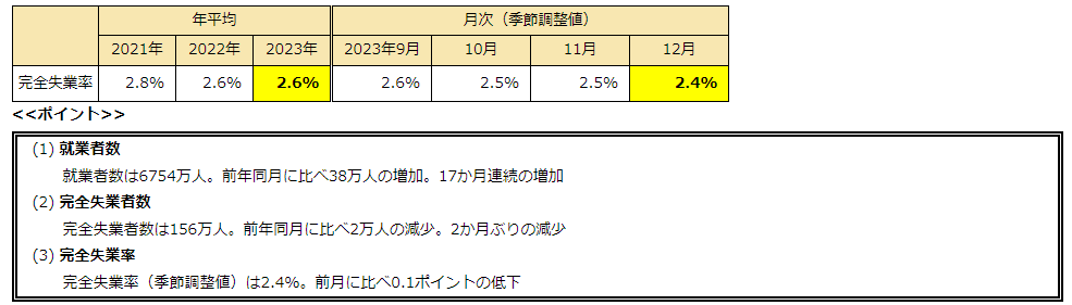 労働力調査(基本集計) 2023年(令和5年)12月分結果@総務省統計局より