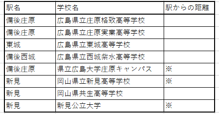 いや、この地域は人口もほとんどいなくて高校もない地域だからではないかと考えた方もいると思いますが、沿線人口は決して多くはないものの東城地域は備後西城の3倍近い人口を抱え、広島県立東城高等学校も立地しています。また備後西城、備後庄原を合わせると庄原市内に公立高校4校、大学1校、新見市内には高校2校、大学1校と一定の学校があります。そう考えると備後西城〜東城に関しては高校生・大学生の通学需要はあり得るし、ここまでないというのは不自然に感じます。