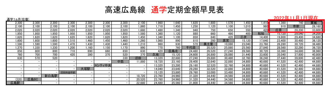 また東城→備後庄原の通学の足を芸備線と共に担う高速バスなのですが1月の学割定期券33600円と芸備線が11,970円なのに比べて値段が高いのも頭に置いておく必要があります。月3万円と言うのはお金持ちの家はともかく、家計にとっては大きな負担になると思います。