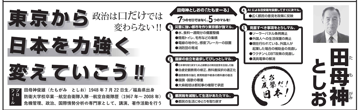 田母神俊雄候補の選挙公報@狛江市選挙管理委員会より