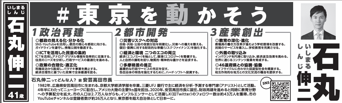 石丸信二候補の選挙公報@狛江市選挙管理委員会より