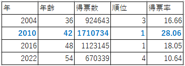 さて蓮舫候補はもともと民主党~民進党〜立憲民主党の東京選挙区選出の参議院議員として2004年から活動していて、特に民主党が与党だった2010年の参議院選挙では171万票、得票率28.06%と圧倒的な得票を得た事から民主党系では東京都で圧倒的な人気を誇っていました。