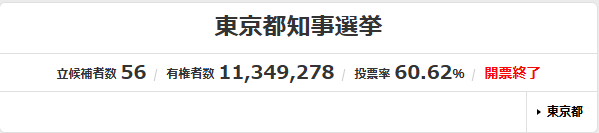 もともとこういった首長選挙では現役主張が強い事、選挙戦序盤戦での情勢調査の段階で小池知事の実績に関しては70%近い人たちが評価すると答え、小池知事が不満点が無いと迄は言わないもののそれなりに評価されていたことを考えると妥当な結果に見えます。という事で今回は当選者と言う意味合いとは違った視点での主役を中心に見ていこうと思います。
