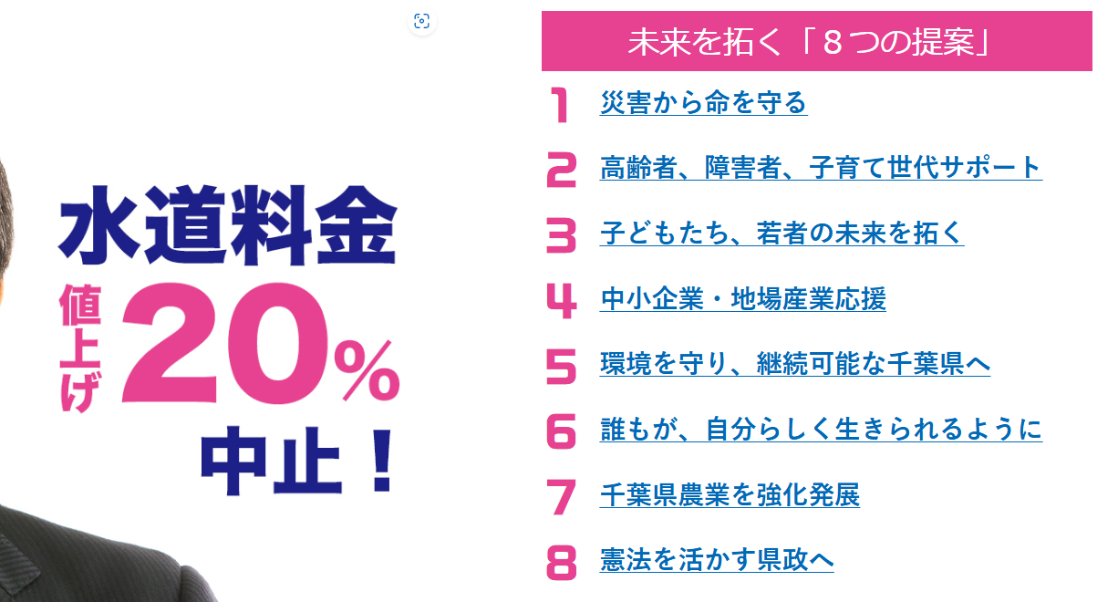 しかし意外だったのは水道を中心とした老朽インフラ対策、例えば1月に三郷市での陥没事故がありましたが千葉県でも大網白里市で水道管破損事故がある中、知事が公約として項目を上げなかったのは意外と言えば意外でした。