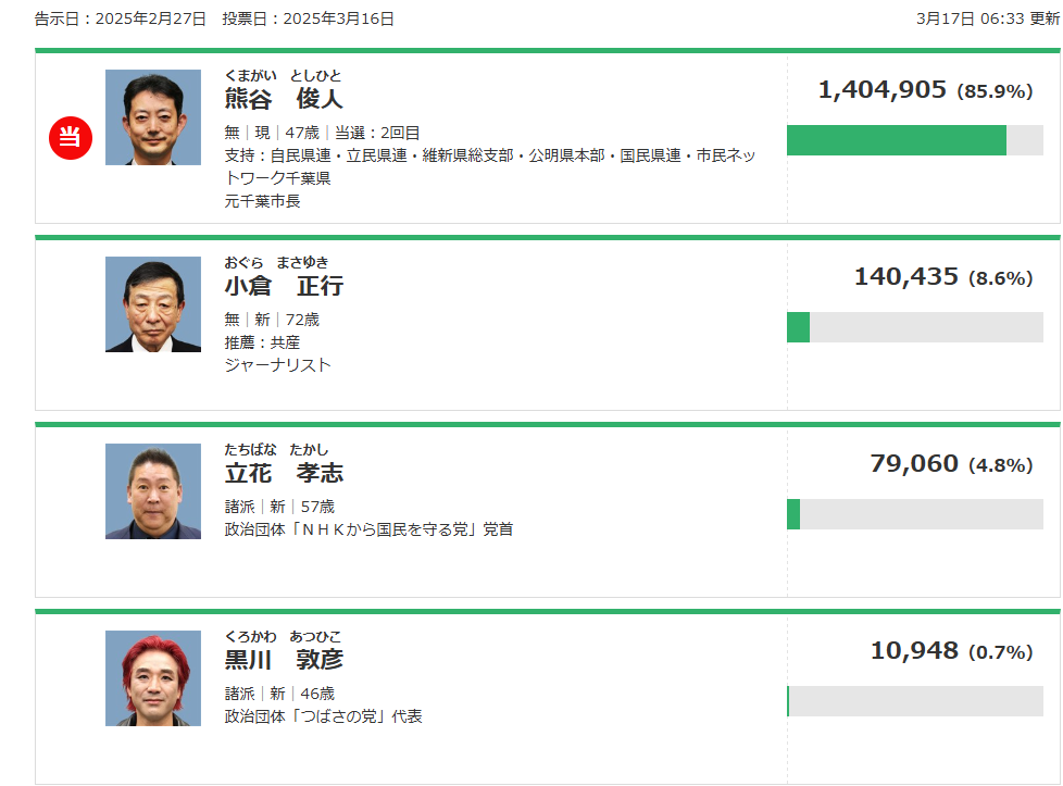 確かに熊谷知事の圧勝は妥当性はあるとは思いますが、こういった検証が行われなかったとすれば千葉県民にとって不幸だなと思わざるを得ません。