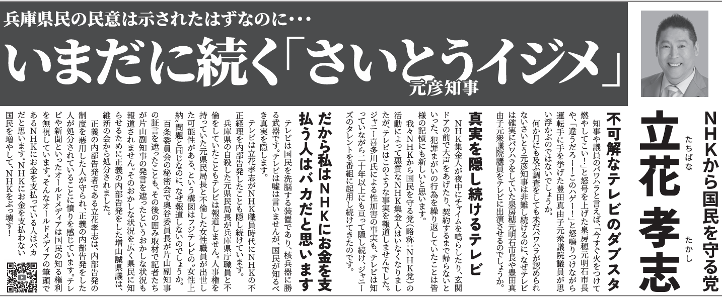 さて続いては立花孝志氏、千葉県知事選挙なのに活動の大半が兵庫県と言う事で話題になったり、批判されたりしました。個人的には立花氏が考えていたのは今年行われる参院選に向けて支持の維持・拡大で、それを考えると変則的ながら昨年活躍した兵庫県を重視するのは分からなくはないです。そして批判する人には不思議な感覚になります。確かに彼のやっている事は褒められる事ではないですが、ただ褒められる事をしない人が支持を集められるわけなく、実際彼の政治勢力は国会議員2人と地方議員がいるだけで決して大きいものではないです。それを考えると目くじら立てる所ではないのではと感じてしまうのです。立ち話を問題と思う人がやるべきなのは立花氏の批判ではなく立花氏以外の候補の話題を増やす事なのではなかろうかと思います。