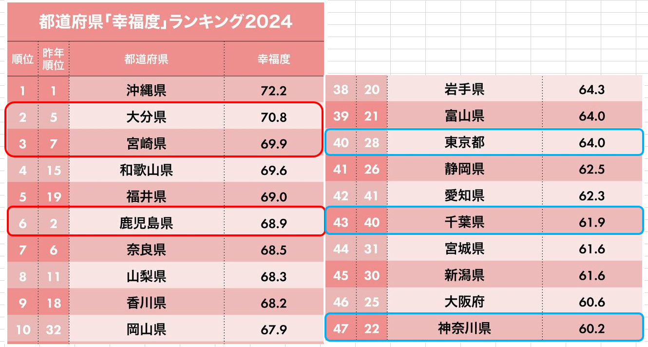 都道府県「幸福度」ランキング2024【47都道府県・完全版】@Diamond2024/8/30より