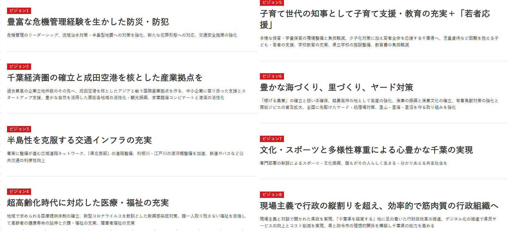 さて圧勝した熊谷知事、政策を見ると一見各分野網羅的に抑えられているように見えます。
