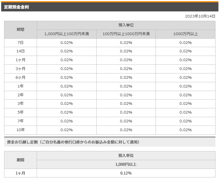 ホーム > 資産運用 > 円預金 > 定期預金@楽天銀行2023年10月14日現在
