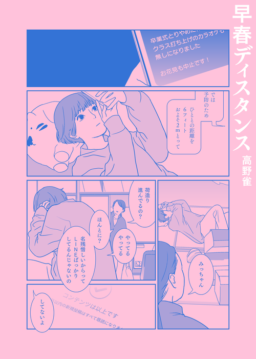 2020年、3月から急に世間が疫病ウワーッて流れになって、「卒業式も何もかも取りやめになってしまった高校生」の話題をニュースで見て、ハ〜やってらんないね〜と描いたのがこの漫画でした(4月上旬)