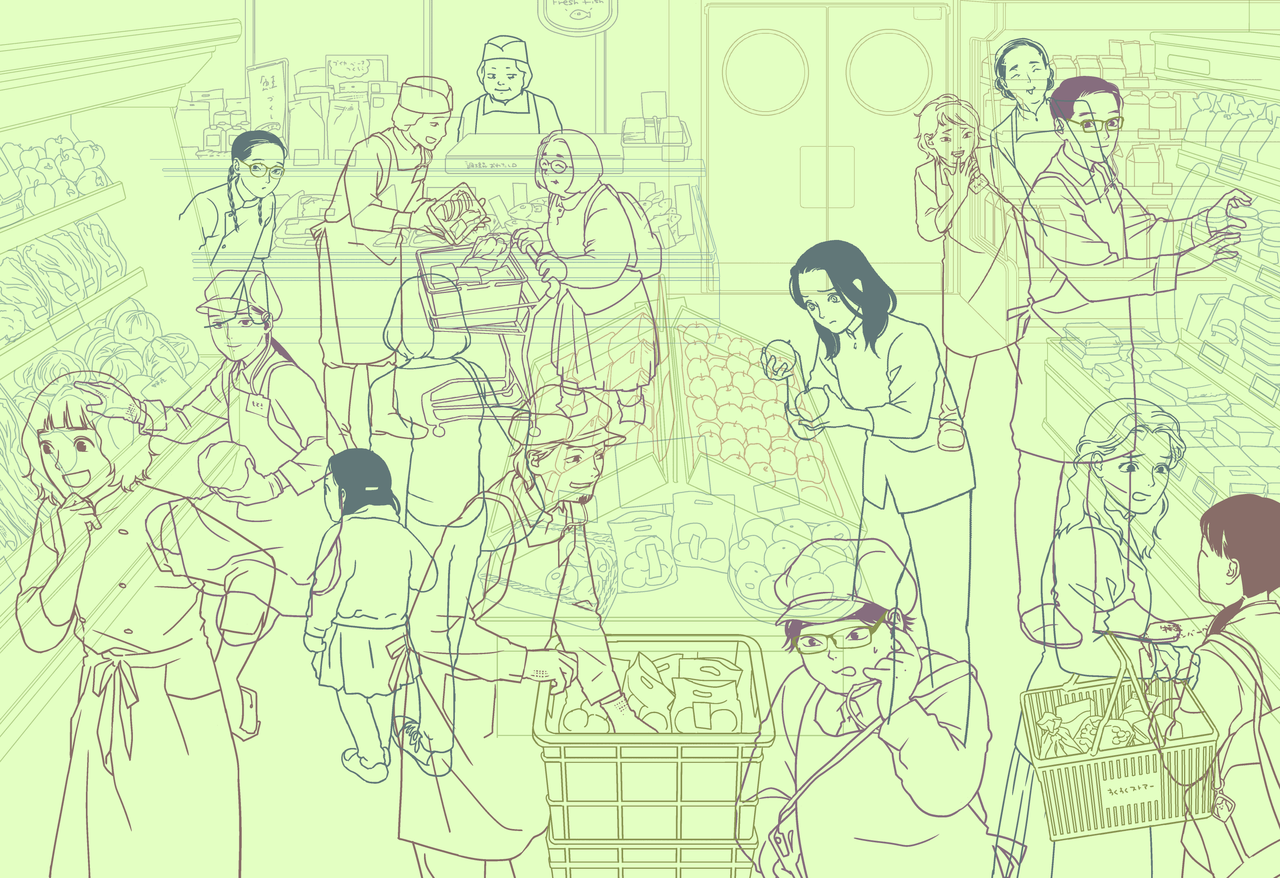 以前、まんがライフオリジナルにて連載していた「しょうもないのうりょく」と同じ「誰もが取るに足らない異能力を持っている世界」での低意欲労働まんが、今回の舞台はスーパーマーケットということでこのようなカバーイラストになりました。