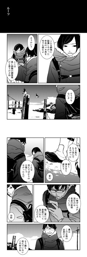 近未来廃墟で男性2人が延々と会話をするしりとり漫画です。