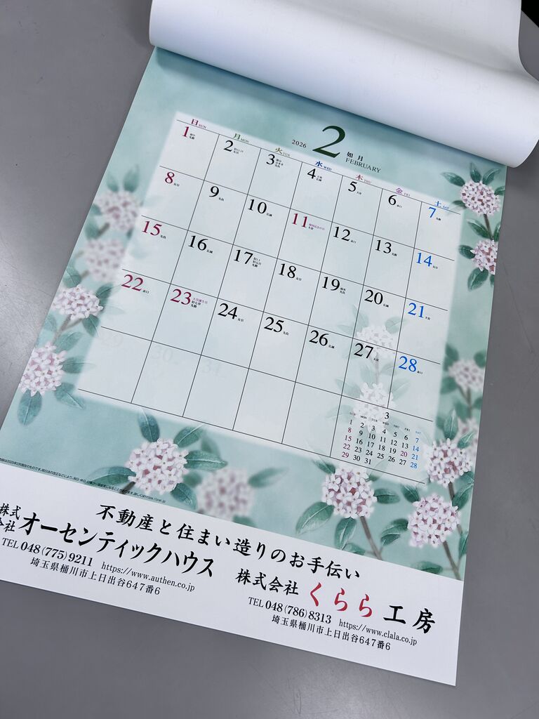 くらら工房 2026年のカレンダー