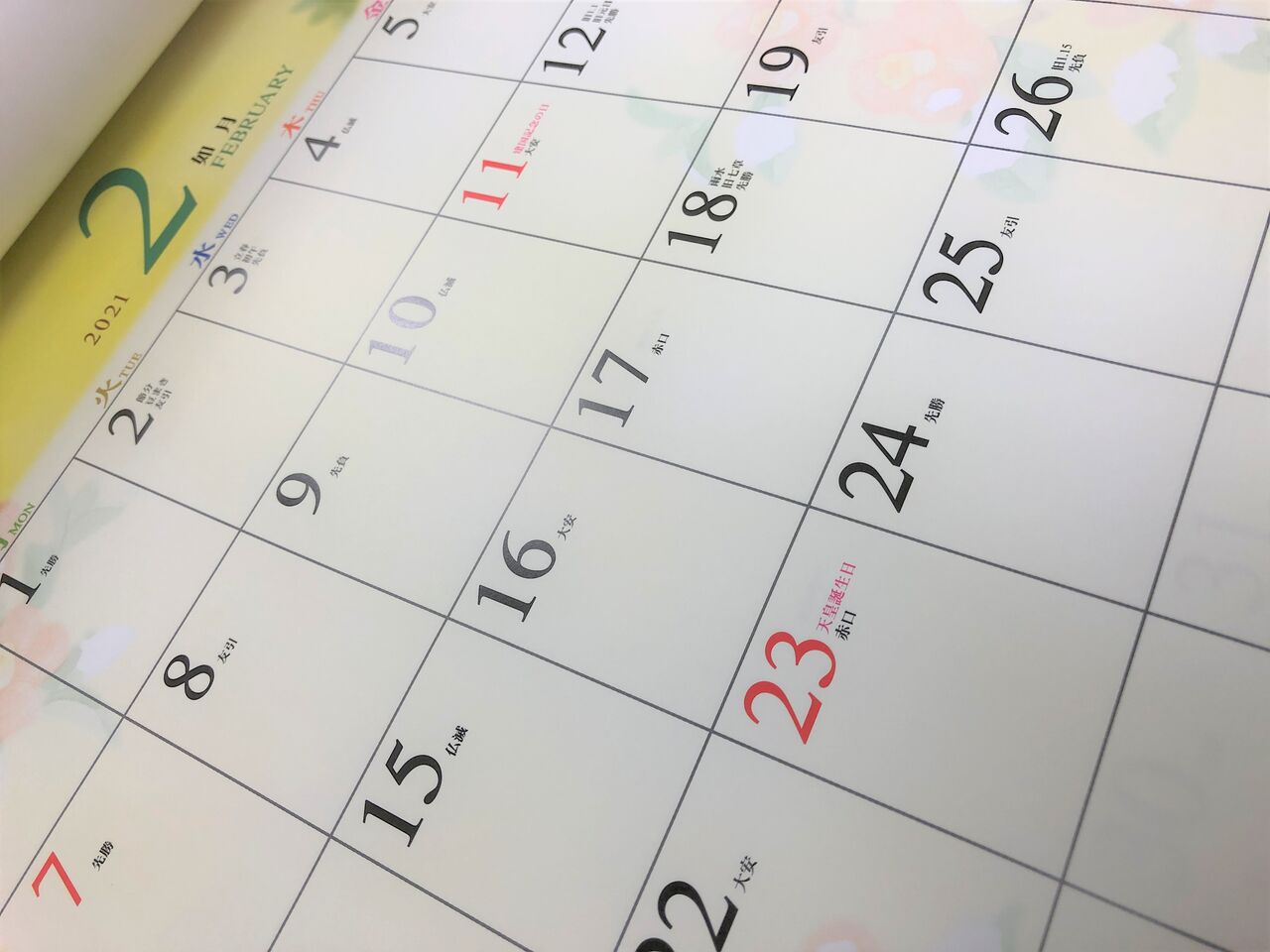 来年のカレンダーも